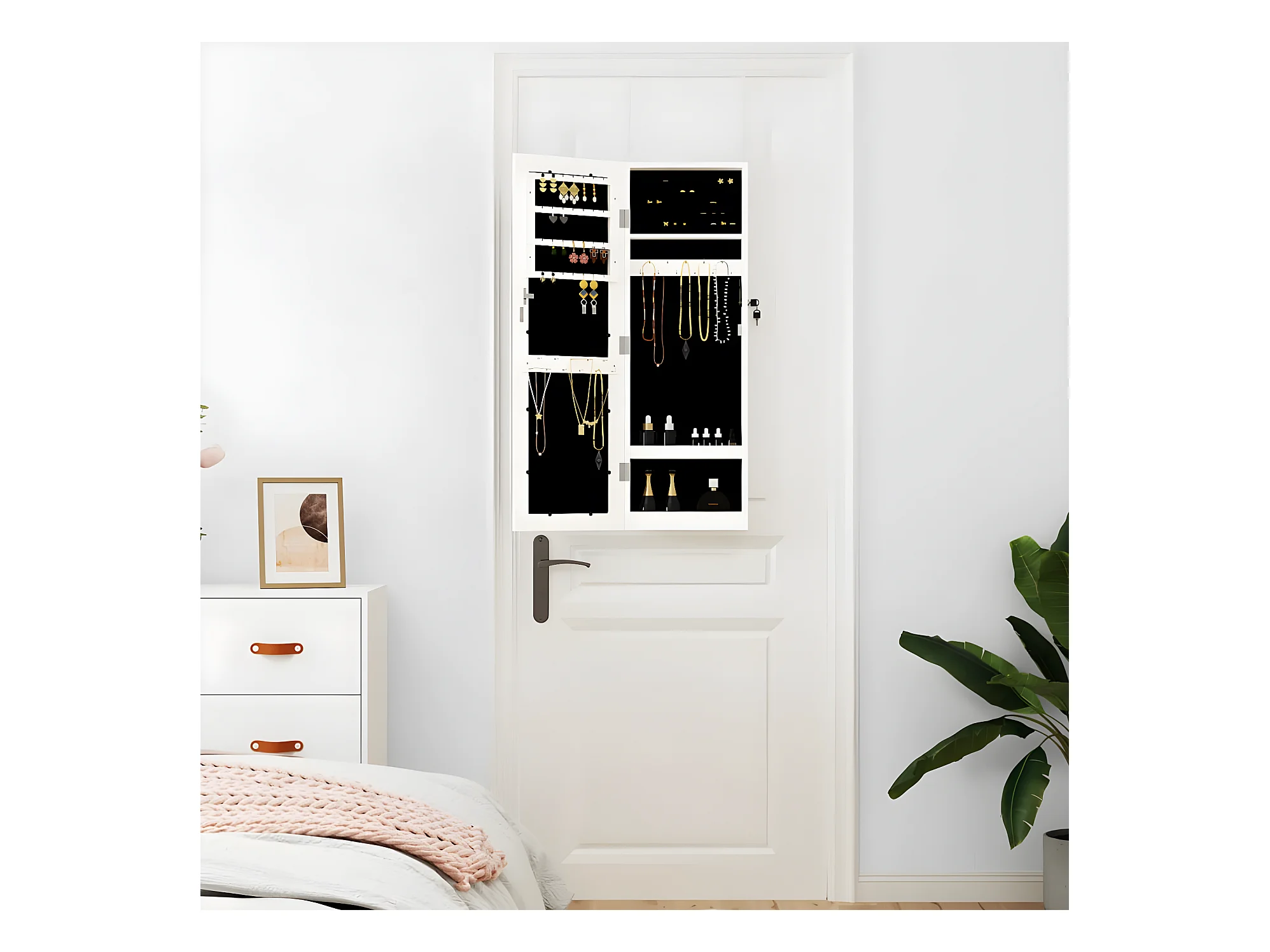 Armoire à bijoux avec miroir et éclairage LED mural blanc OFR47000 BonneVie Meuble