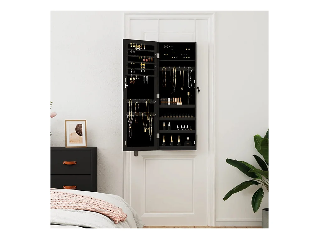Armoire à bijoux avec miroir et éclairage LED mural noir OFR54830 BonneVie Meuble