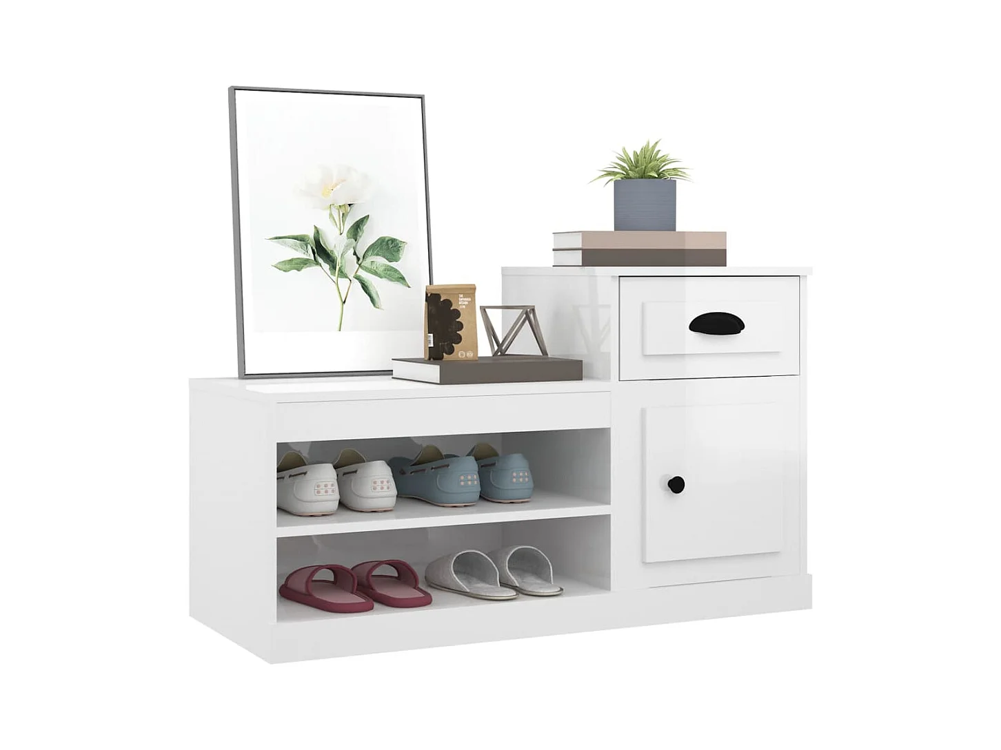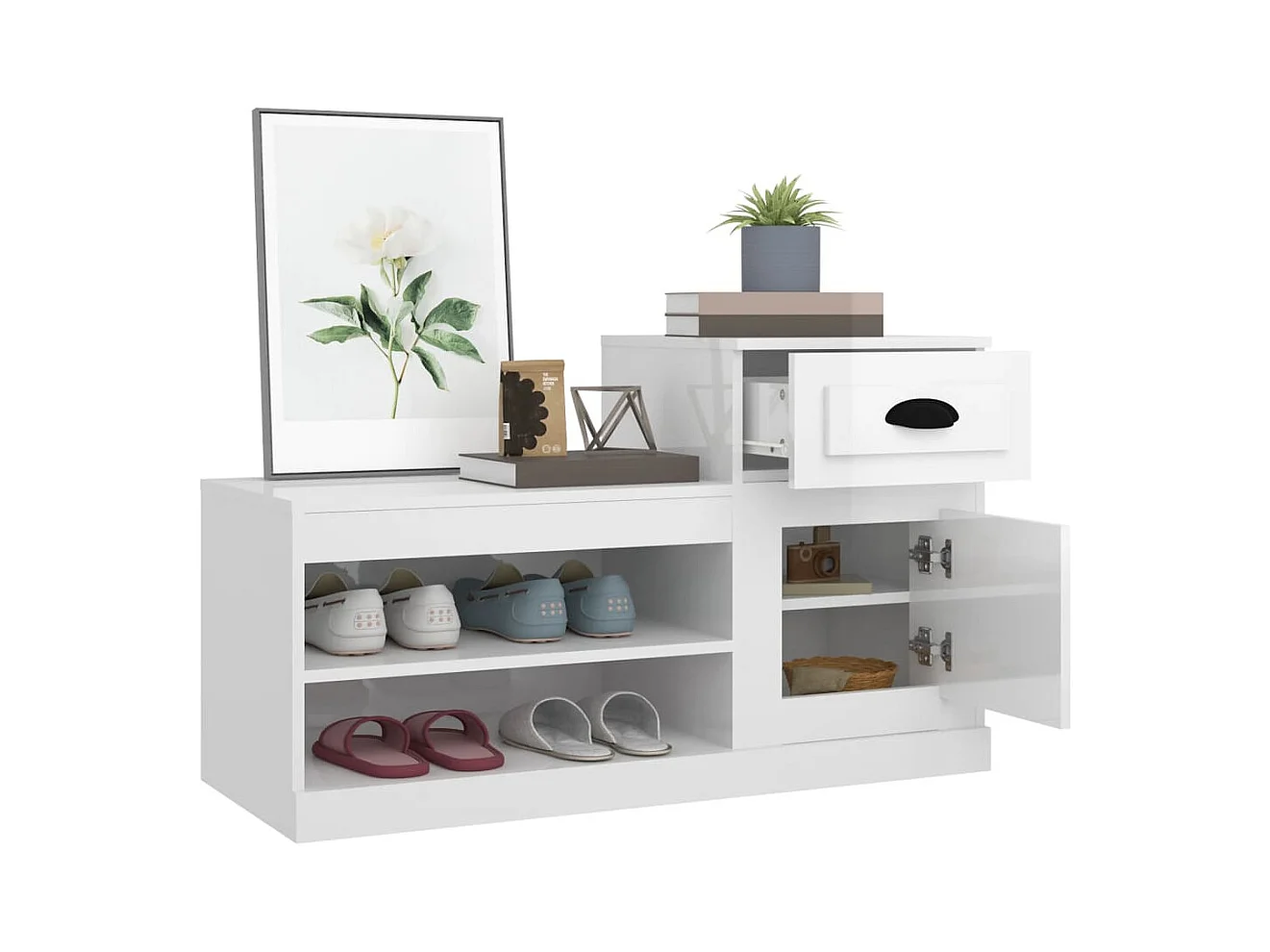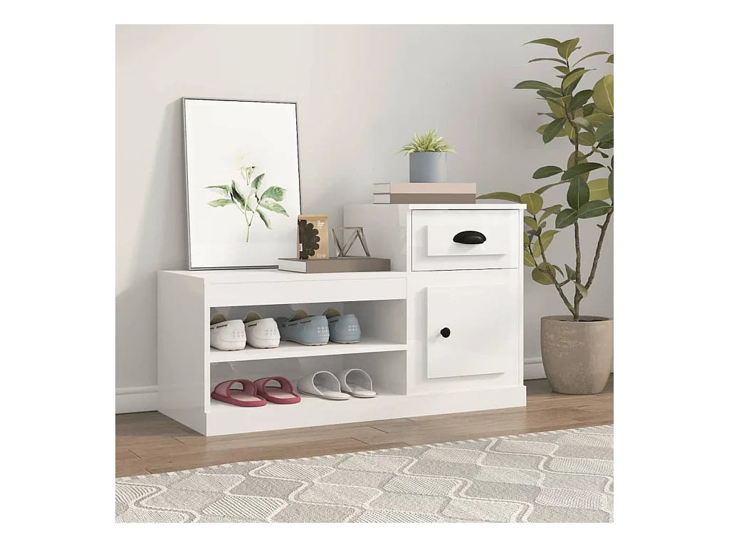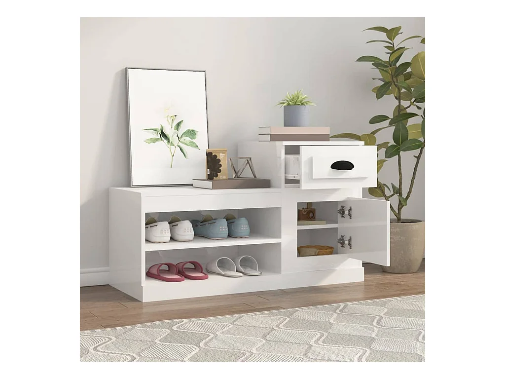 Armoire à chaussure blanc brillant 100x42x60 cm bois ingénierie