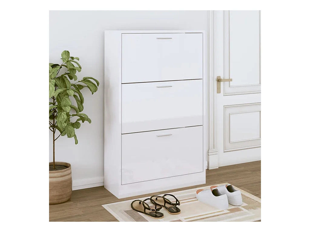 Armoire à chaussure Blanc brillant 63x24x103 cm Bois ingénierie