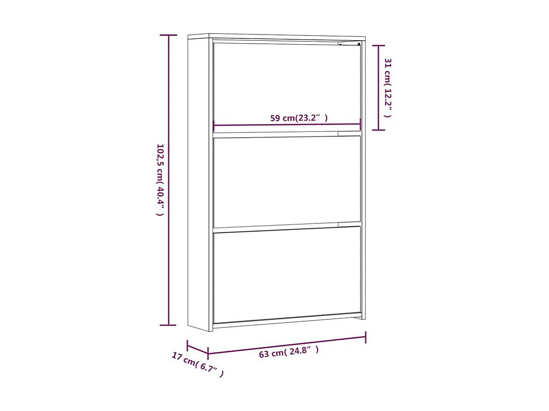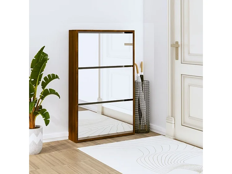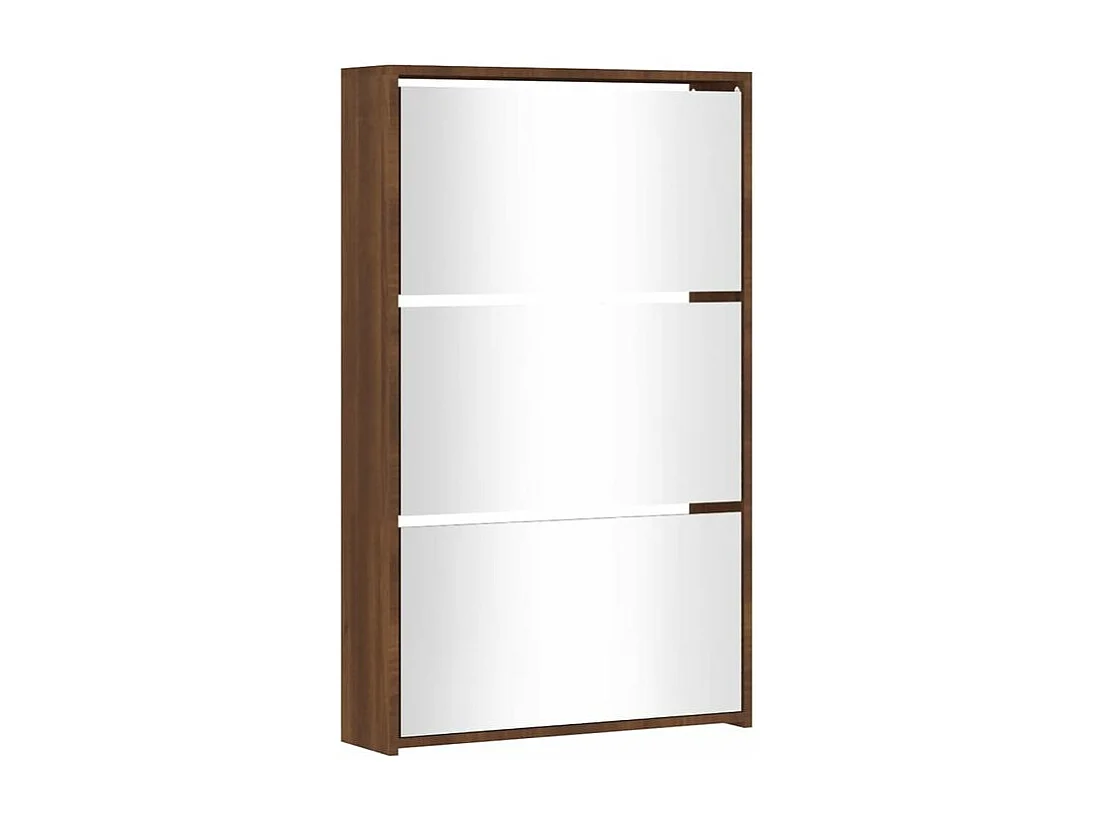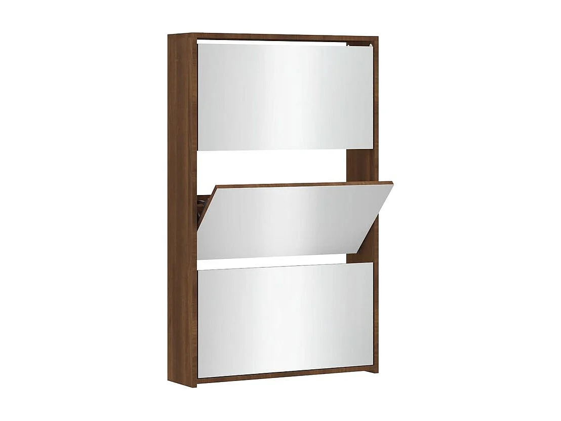 Armoire à chaussures 3 portes rabattables avec miroir Ranka H 102cm – Design moderne et élégant-Couleur Chêne brun