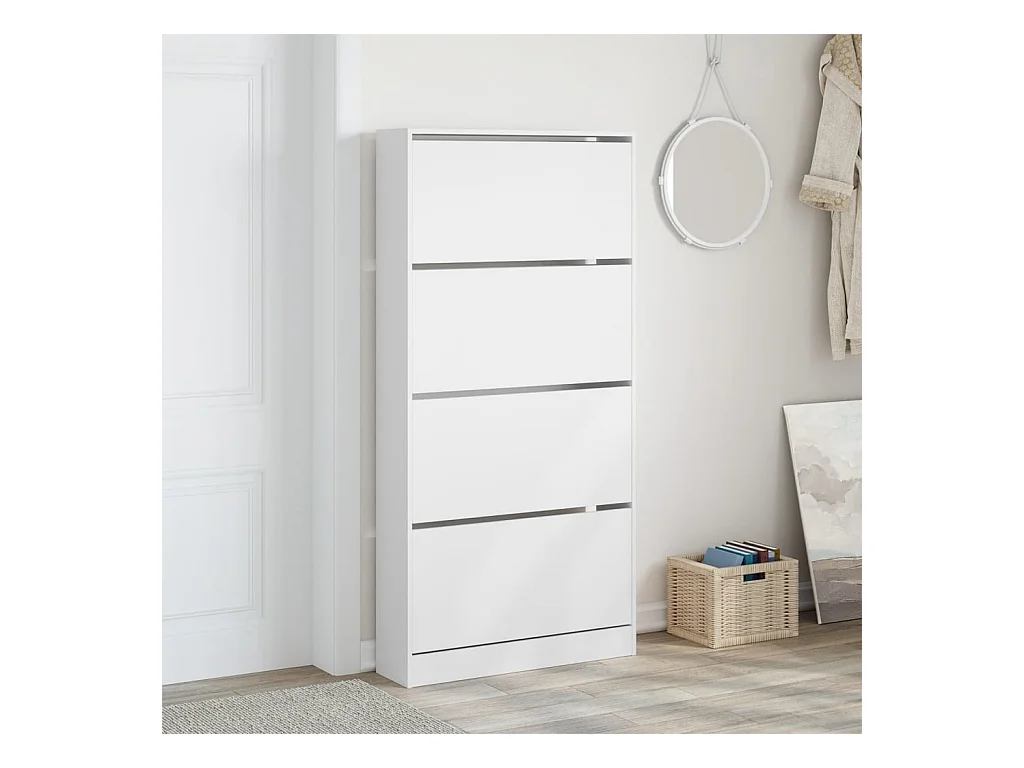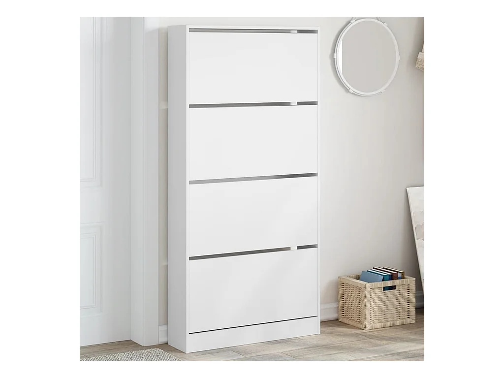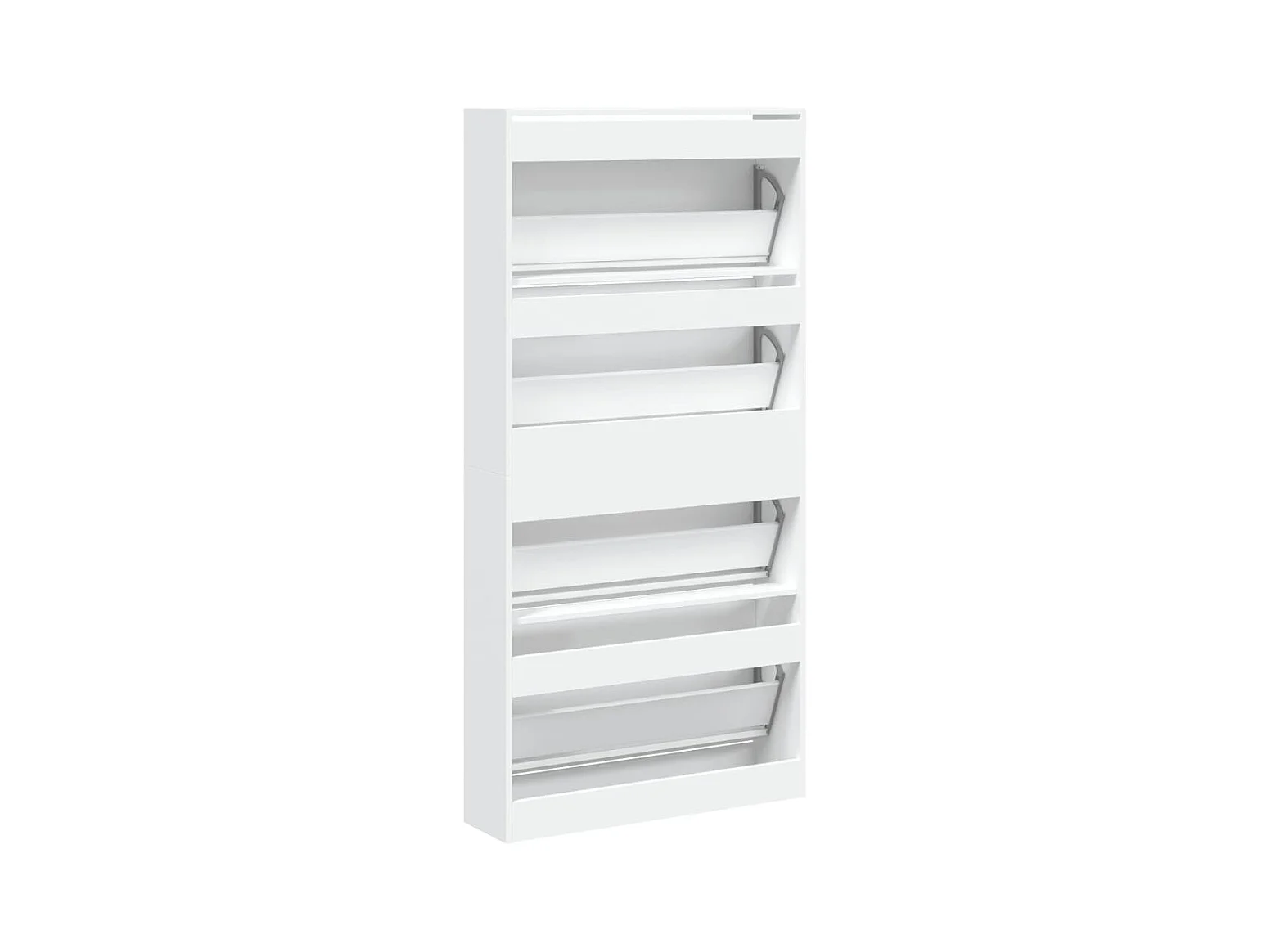 Armoire à chaussures 4 tiroirs rabattables blanc 80x21x163,5 cm