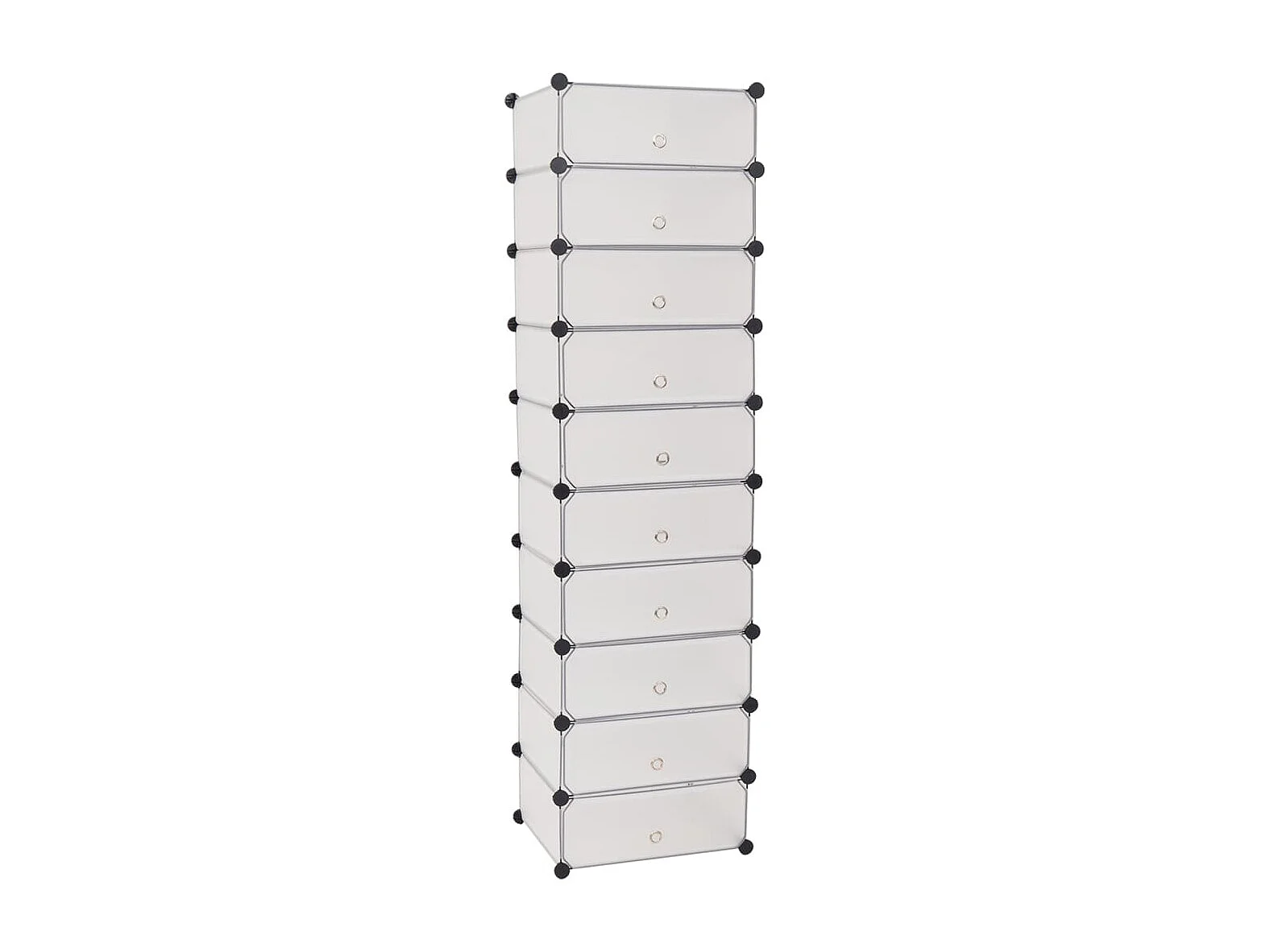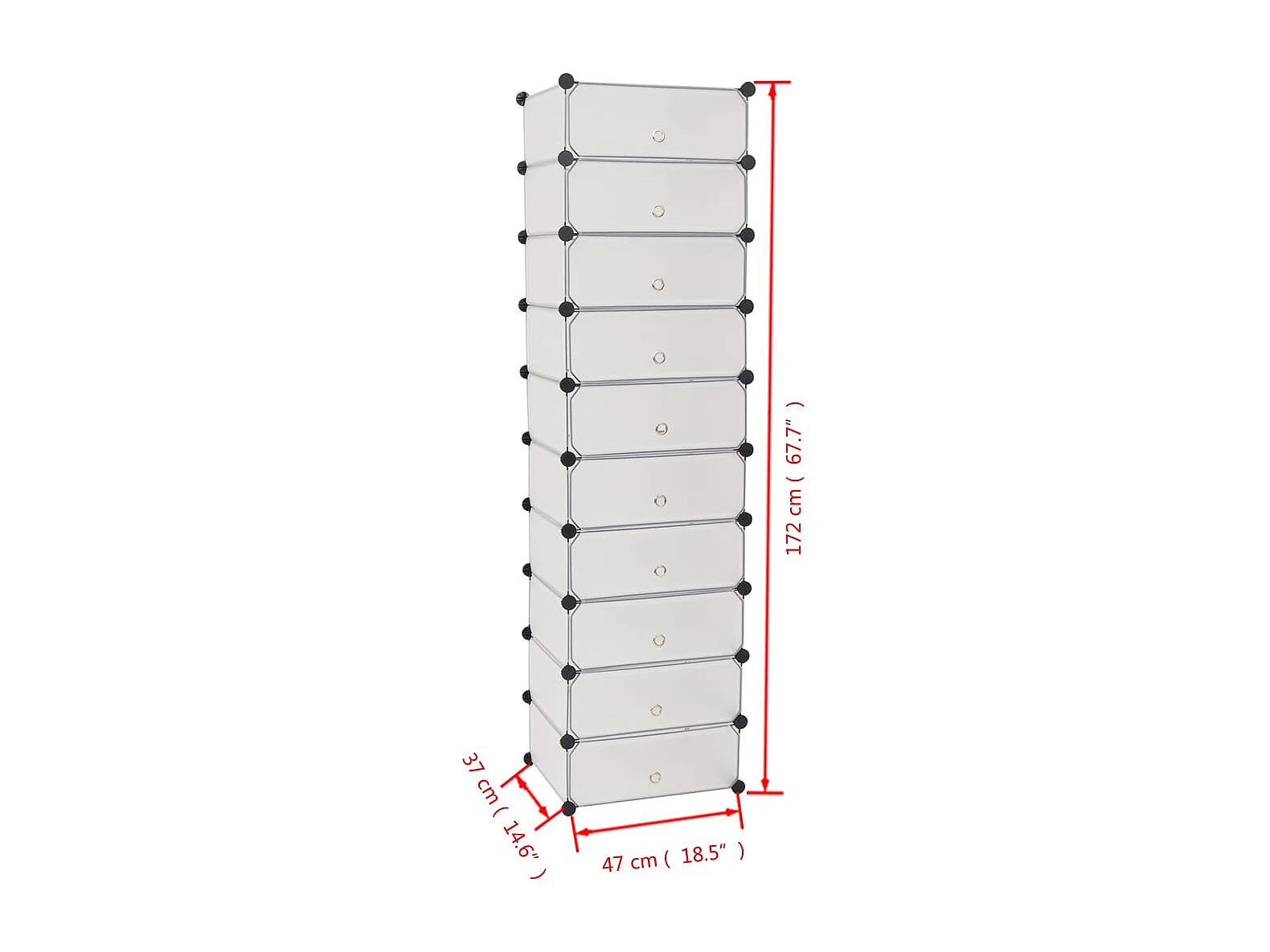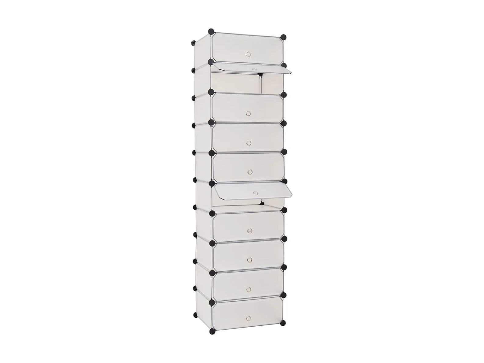 Meuble à chaussures avec 6 compartiments modulables, PP et métal, blanc, (75x37x73 cm)