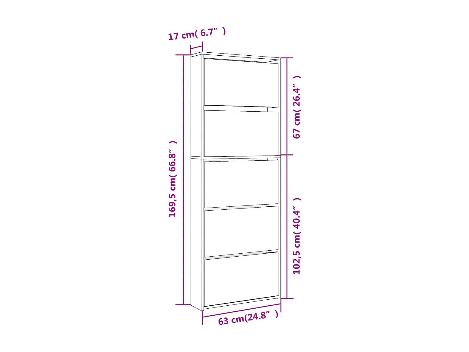 Armoire à chaussures 5 portes rabattables avec miroir Ranka H 170cm – Design moderne et élégant-Couleur Noir