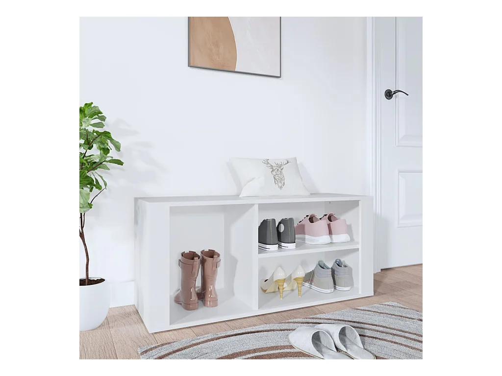 Armoire à chaussure Blanc brillant 100x35x45 cm Bois ingénierie