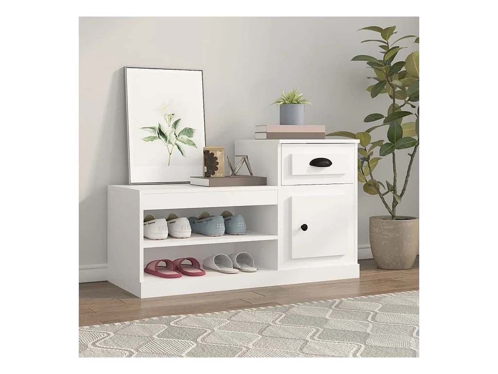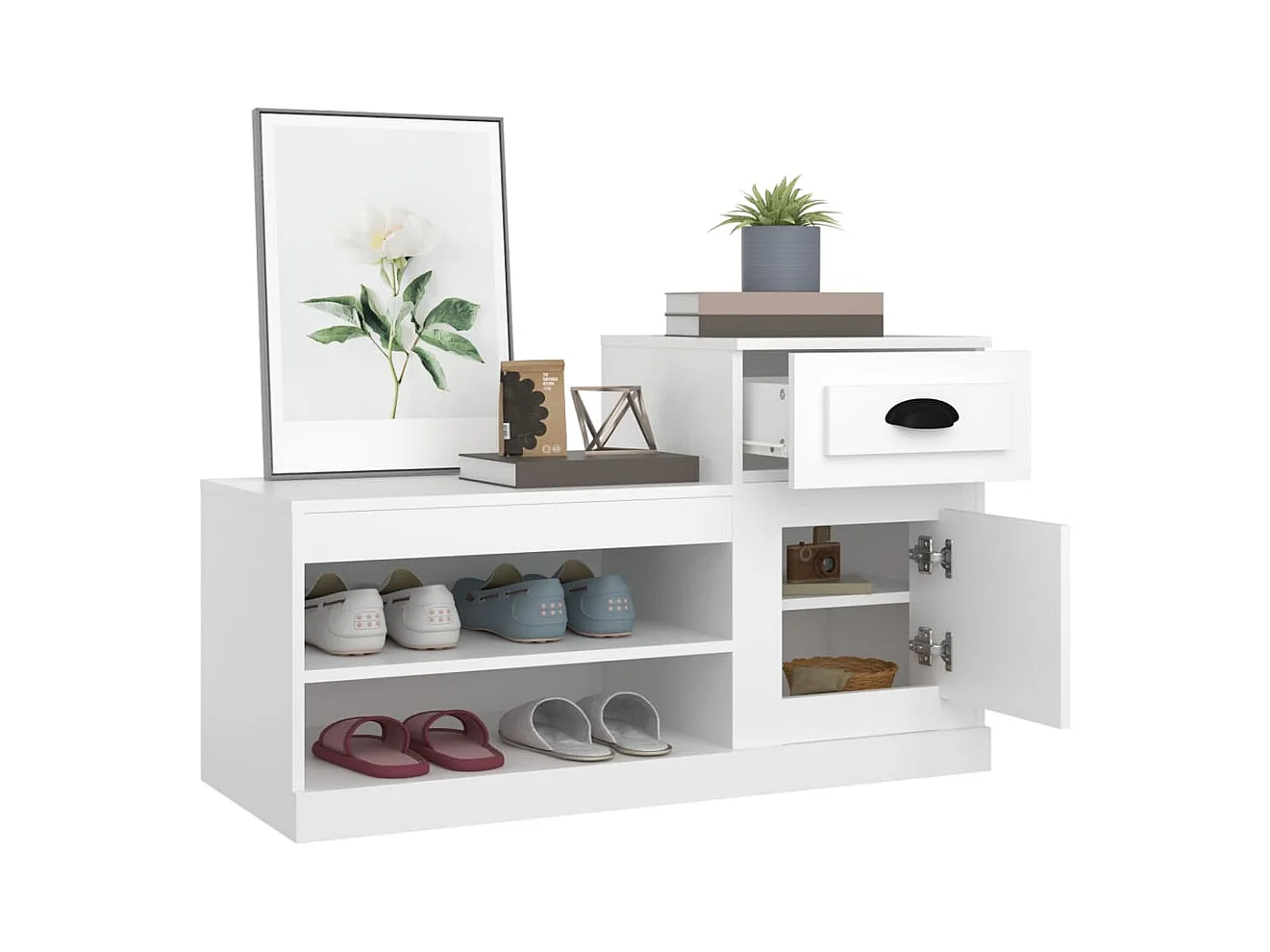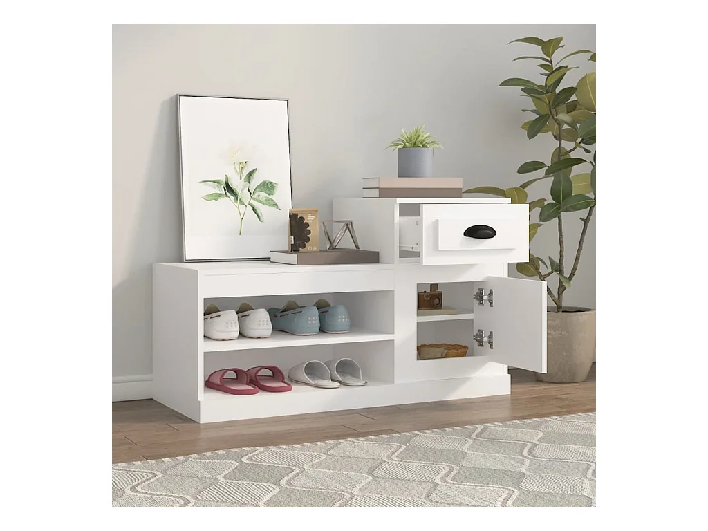 Armoire à chaussure blanc brillant 100x42x60 cm bois ingénierie
