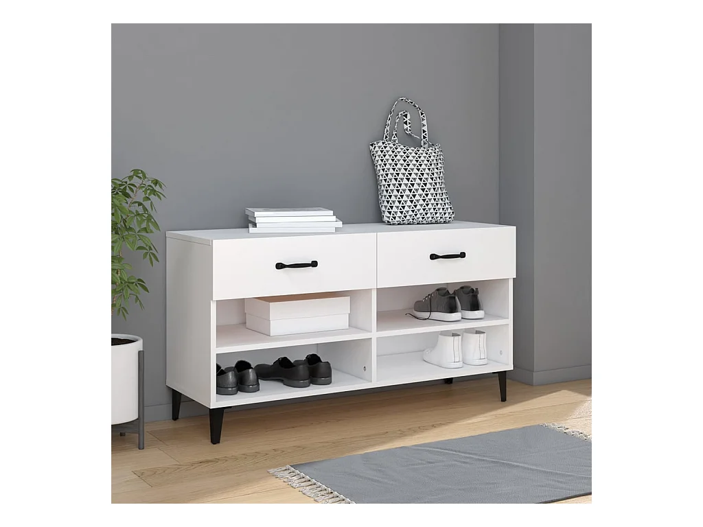 Banc à chaussures blanc 102x35x55 cm bois d'ingénierie