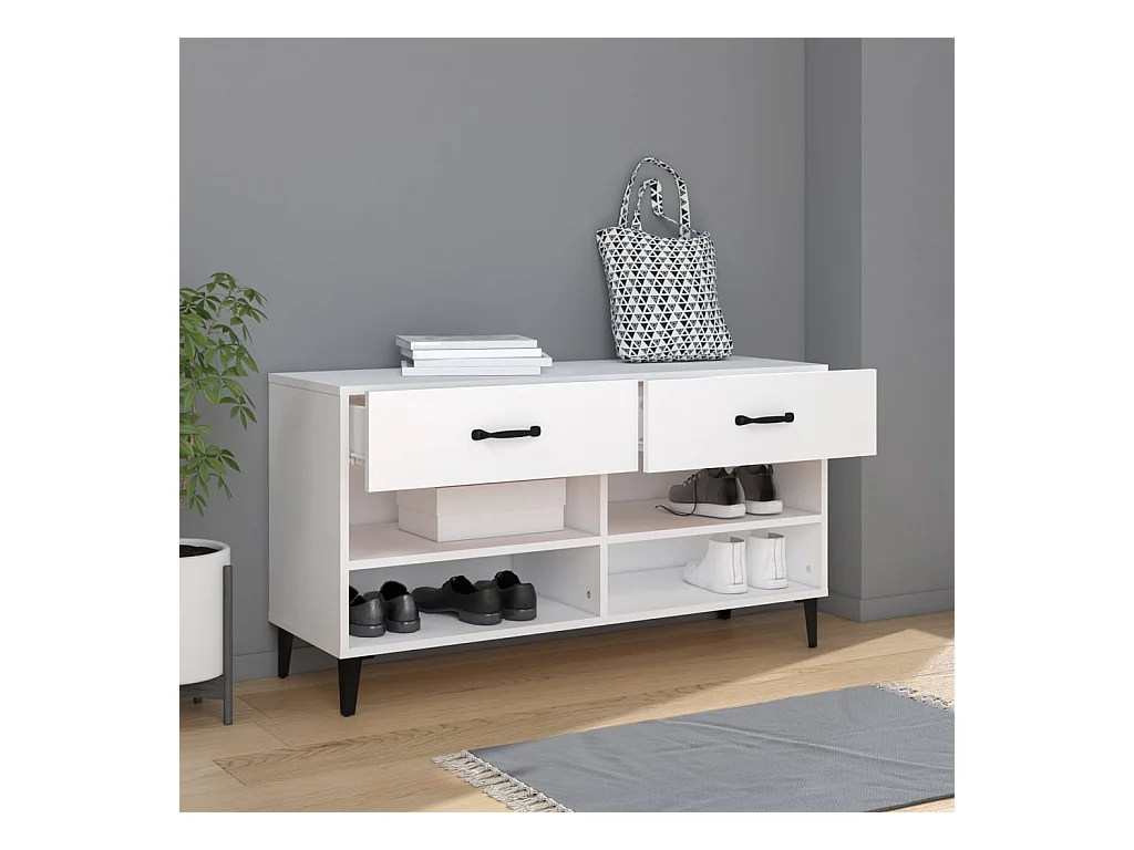Armoire à chaussure Blanc brillant 102x35x55 cm Bois ingénierie