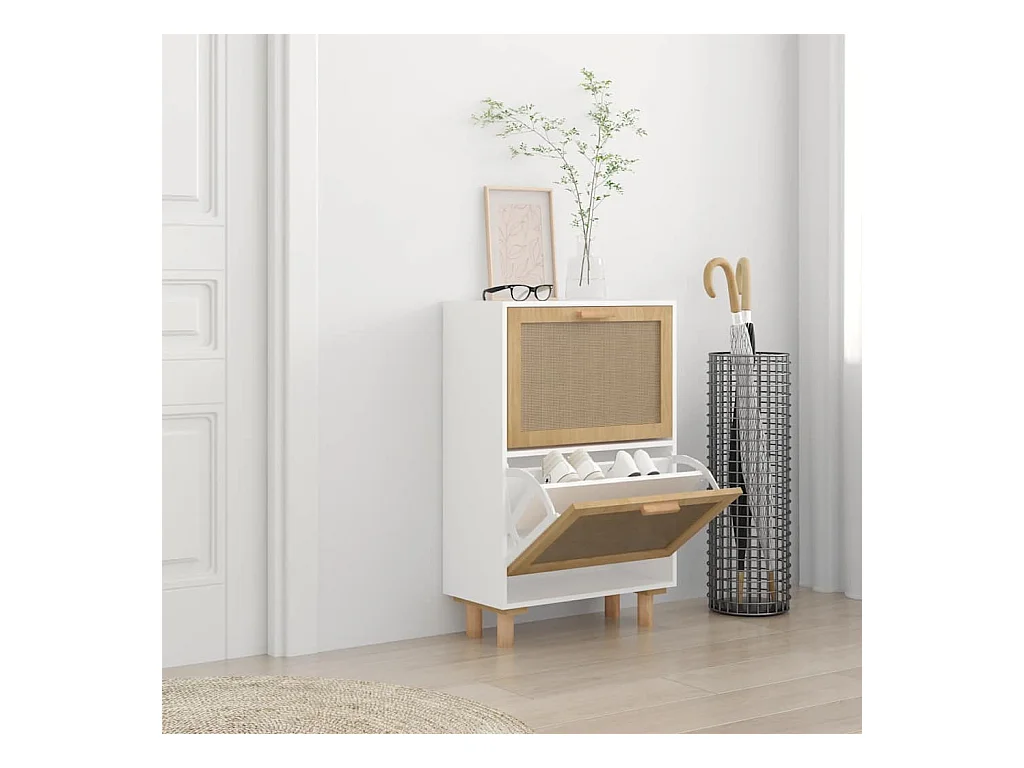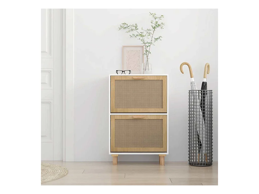 Armoire à chaussures Blanc 52x25x80 cm Bois d'ingénierie/rotin