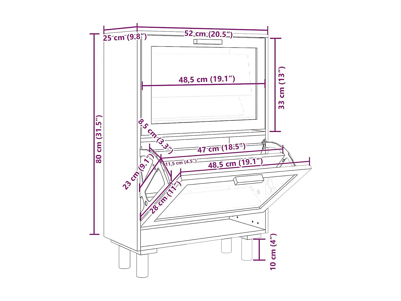 Armoire à chaussures Blanc 57,5x33x80 cm Bois d'ingénierie