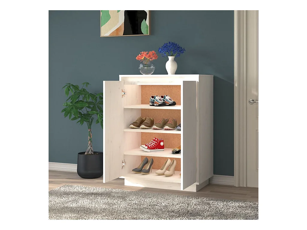 Armoire à chaussures 60x35x96 cm blanc bois massif de pin