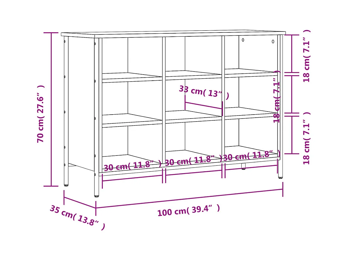 Armoire à chaussures chêne fumé 100x35x70 cm bois d'ingénierie