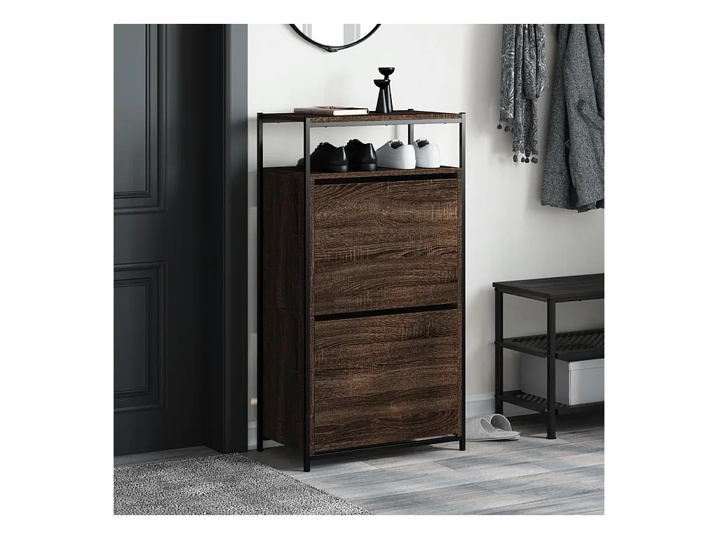 Armoire à chaussures chêne marron 60x34x112cm bois d'ingénierie