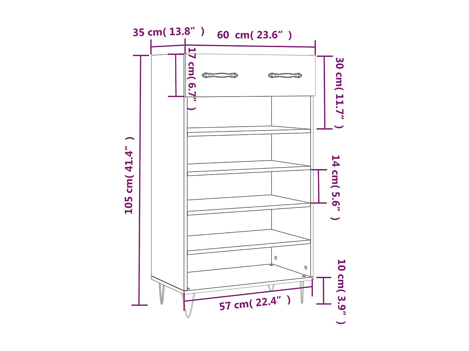 Armoire à chaussures chêne sonoma 60x35x105cm bois d'ingénierie