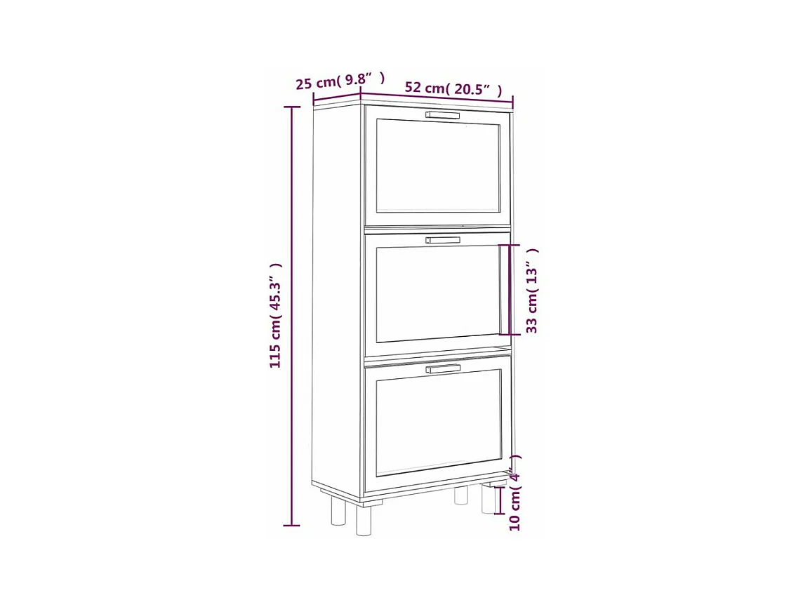 Armoire à chaussures en bois er rotin Viba L 52 x H 115cm - Style tendance-Couleur Noir
