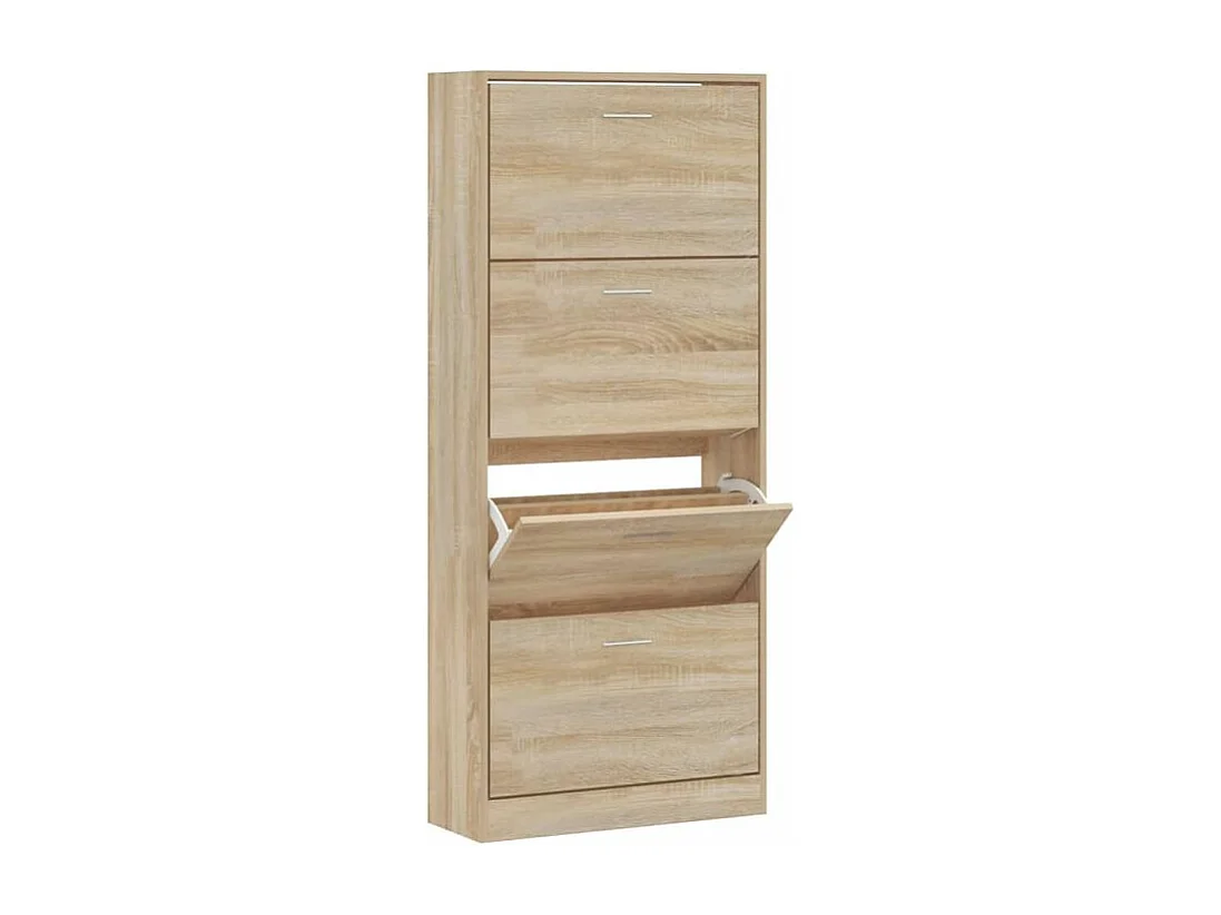 Armoire à chaussures en bois Puerto L63xH147xP24 – 4 portes rabattables-Couleur Chêne clair