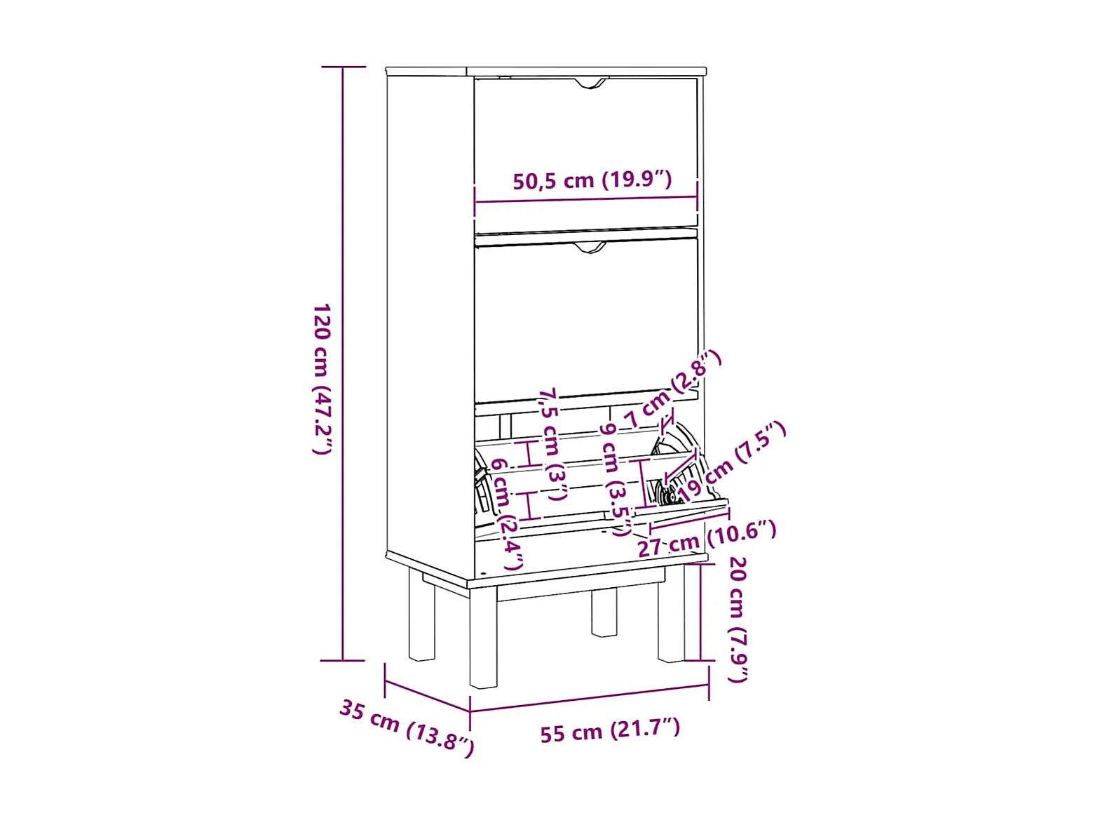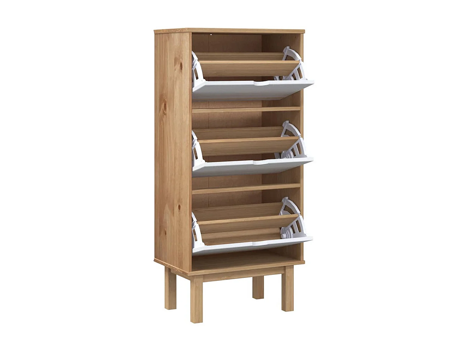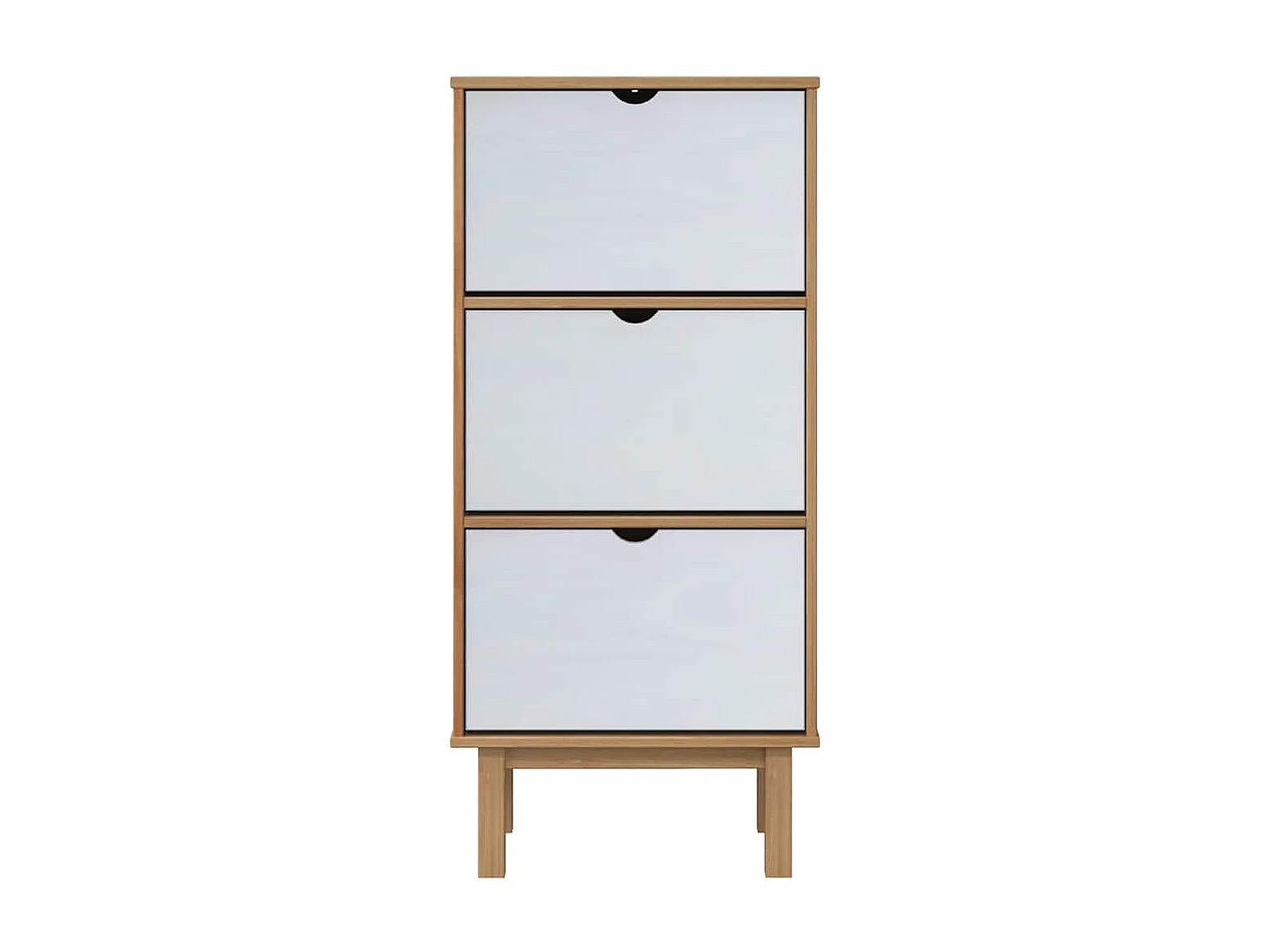 Armoire à chaussures et 3 tiroirs Marron et blanc Bois pin