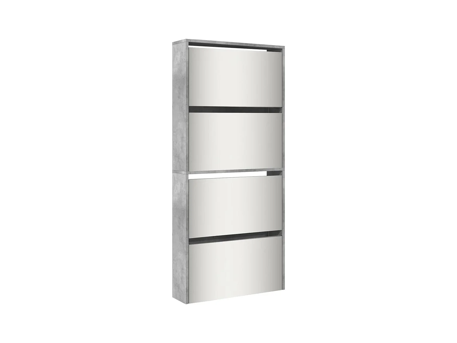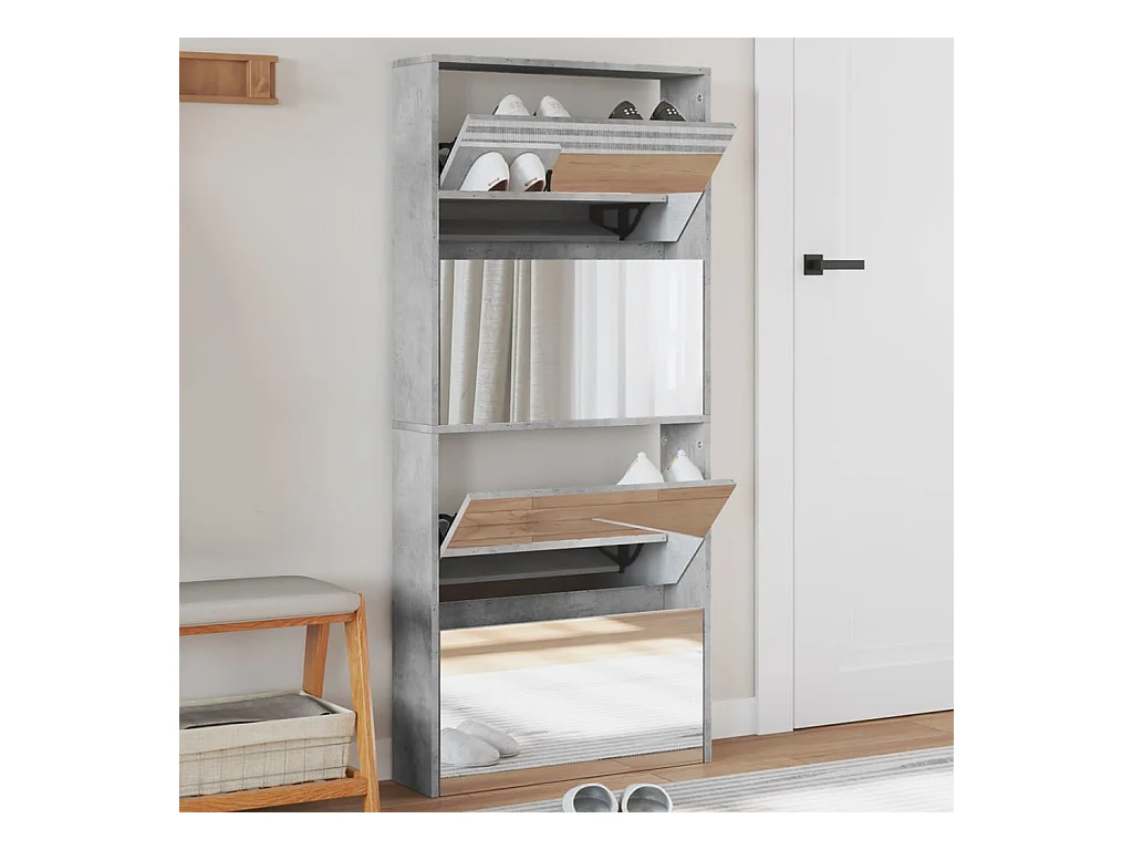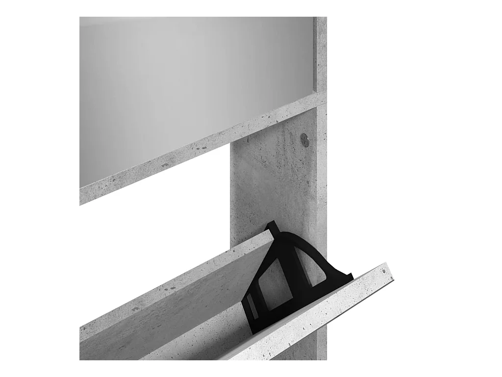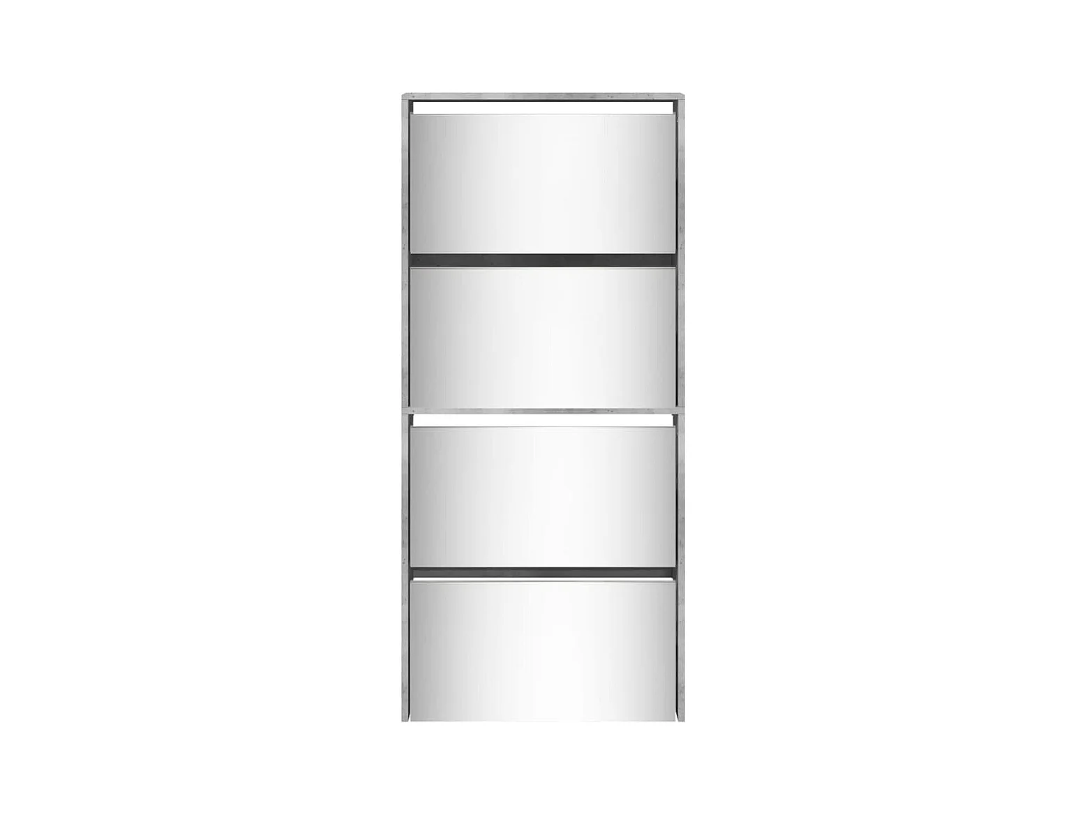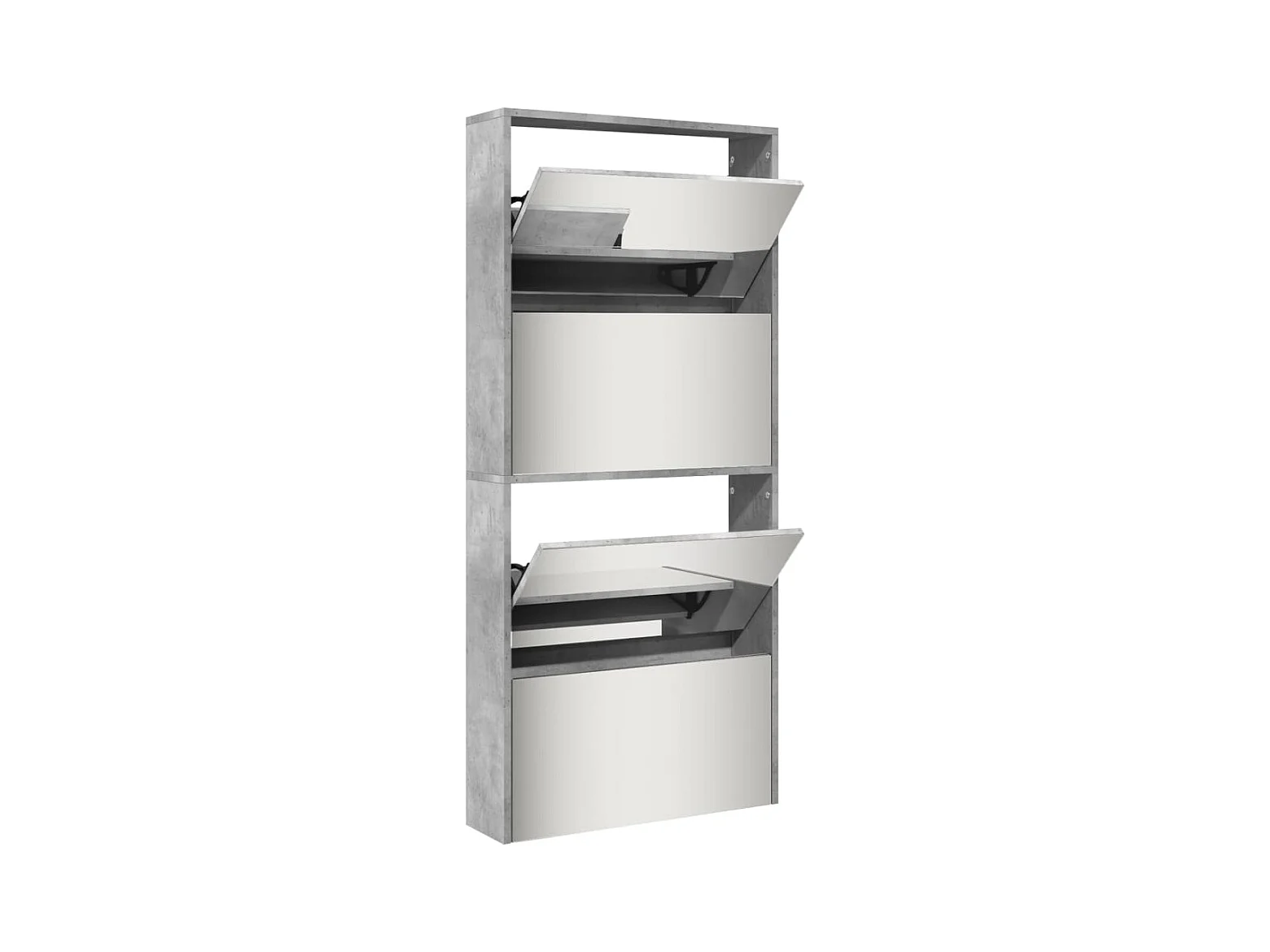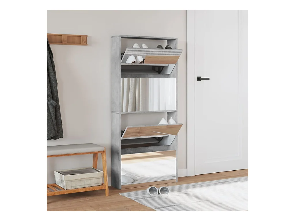Armoire à chaussures et miroir 4 niveaux gris béton 63x17x134