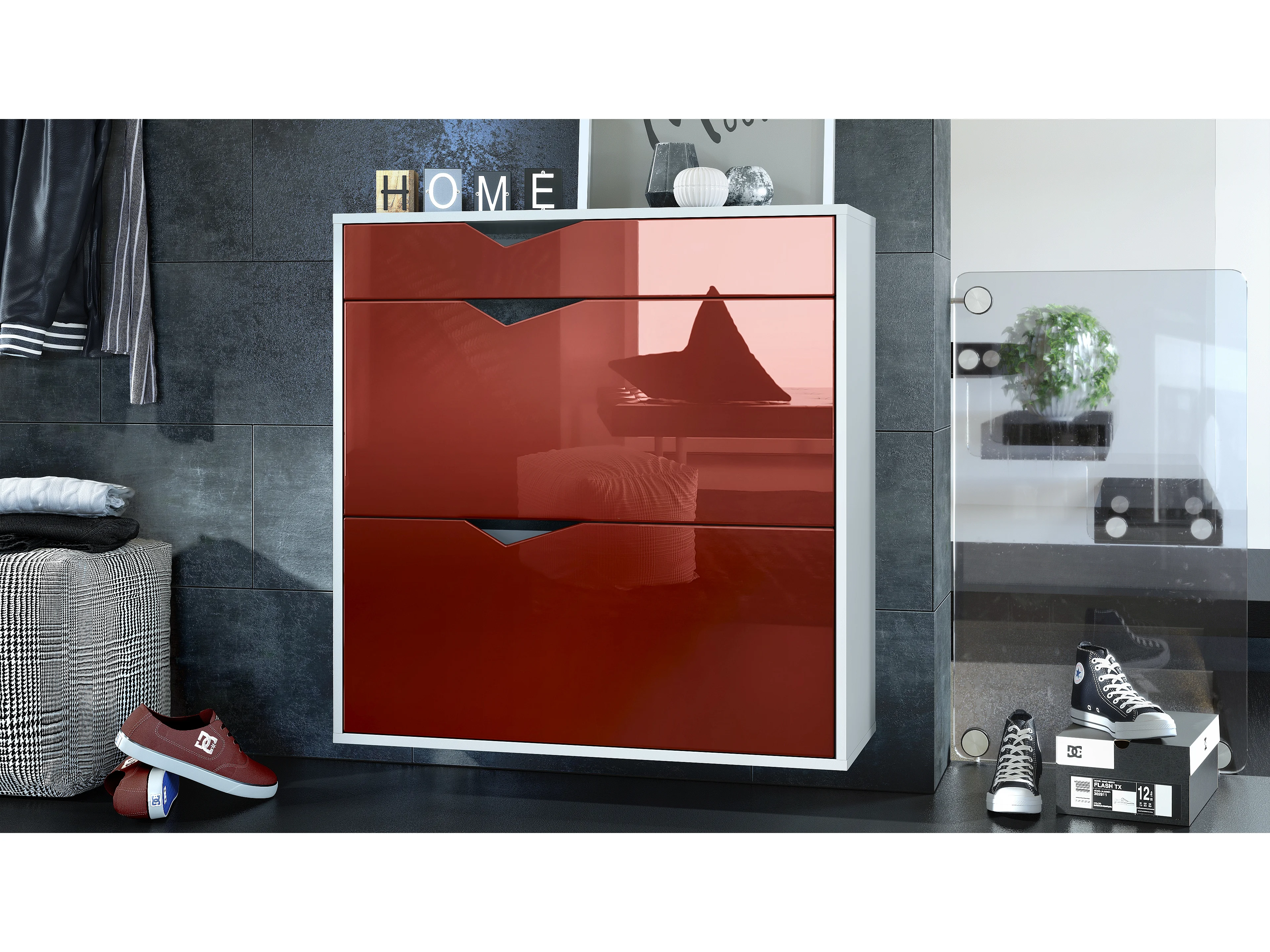 Armoire à chaussures Kolmio 85 x 87 x 33 cm, corps en blanc mat, façades en Bordeaux haute brillance | Grand choix de couleurs