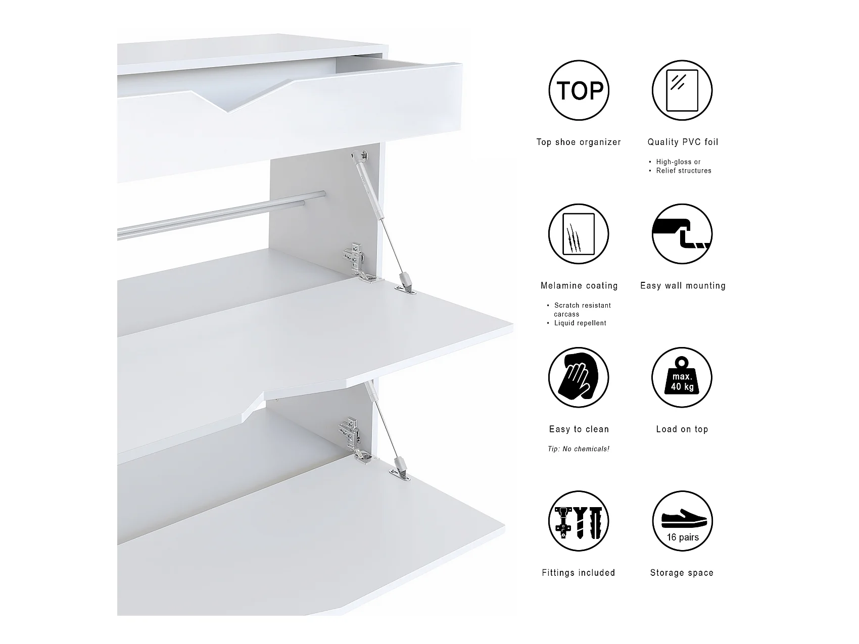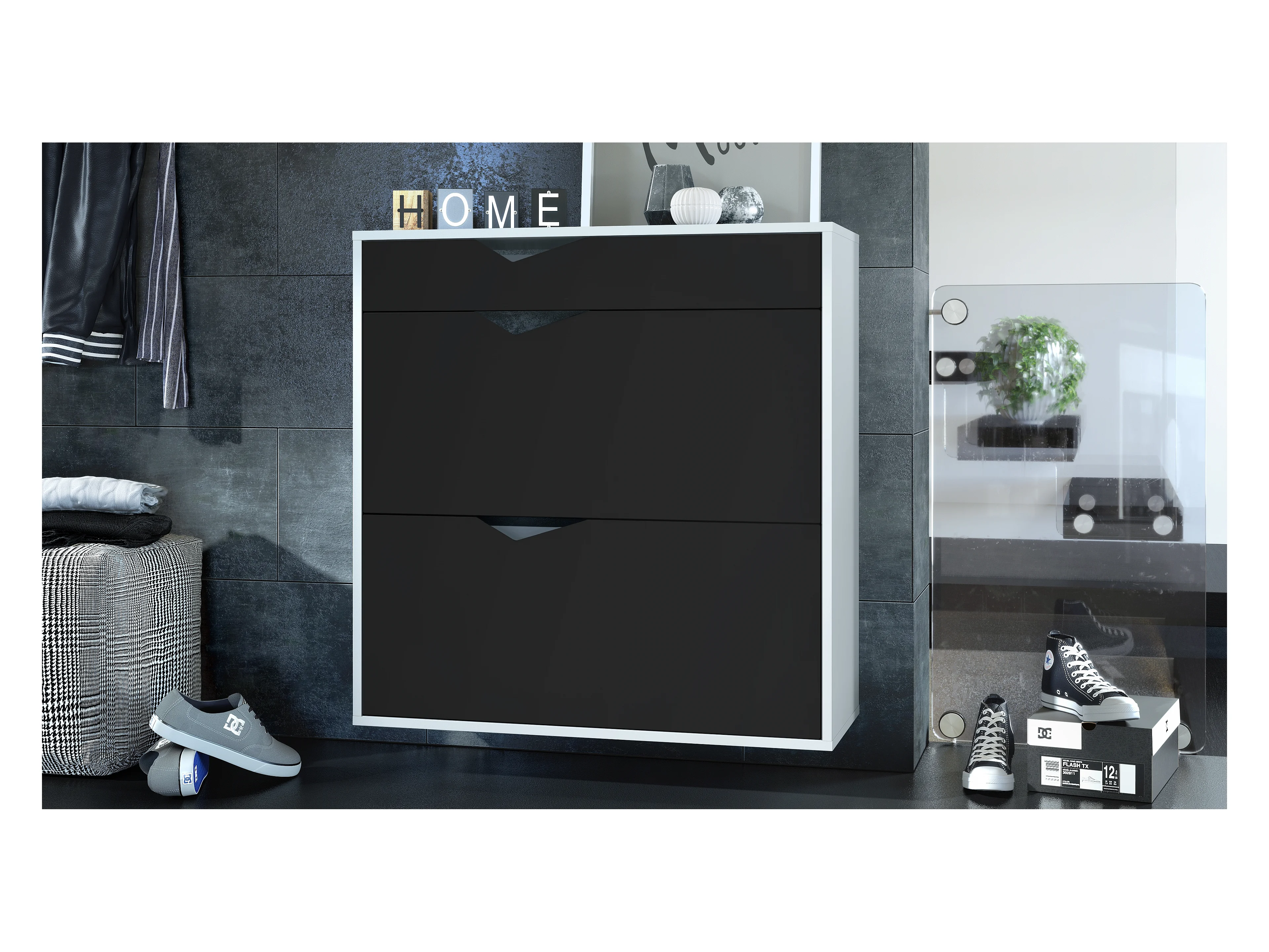 Armoire à chaussures Kolmio 85 x 87 x 33 cm, corps en blanc mat, façades en Noir mat | Grand choix de couleurs