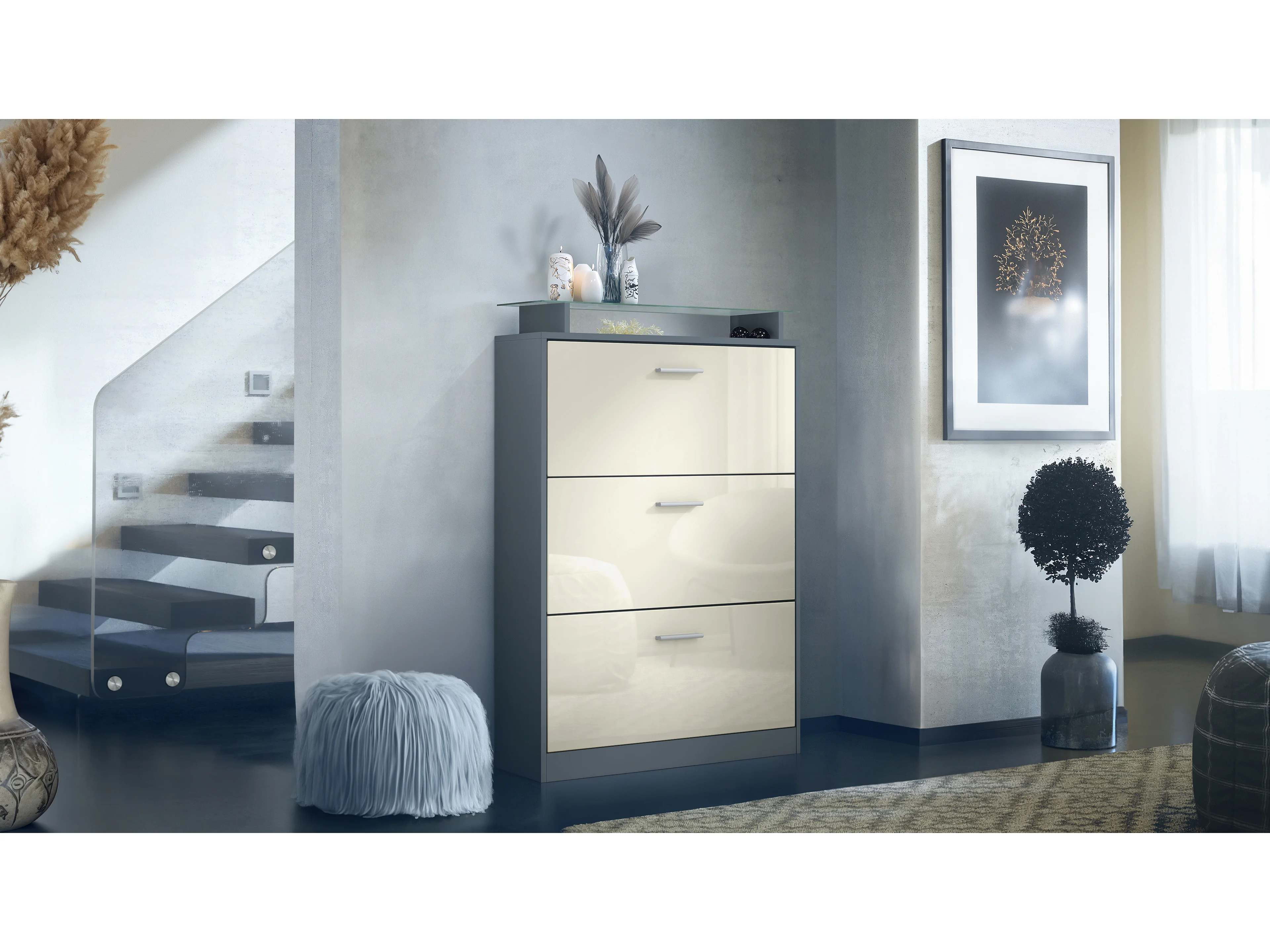 Armoire à chaussures Lavia, benne à chaussures pour 24 paires de chaussures avec 3 abattants et étagère en verre, / (89 x 128 x 23 cm)
