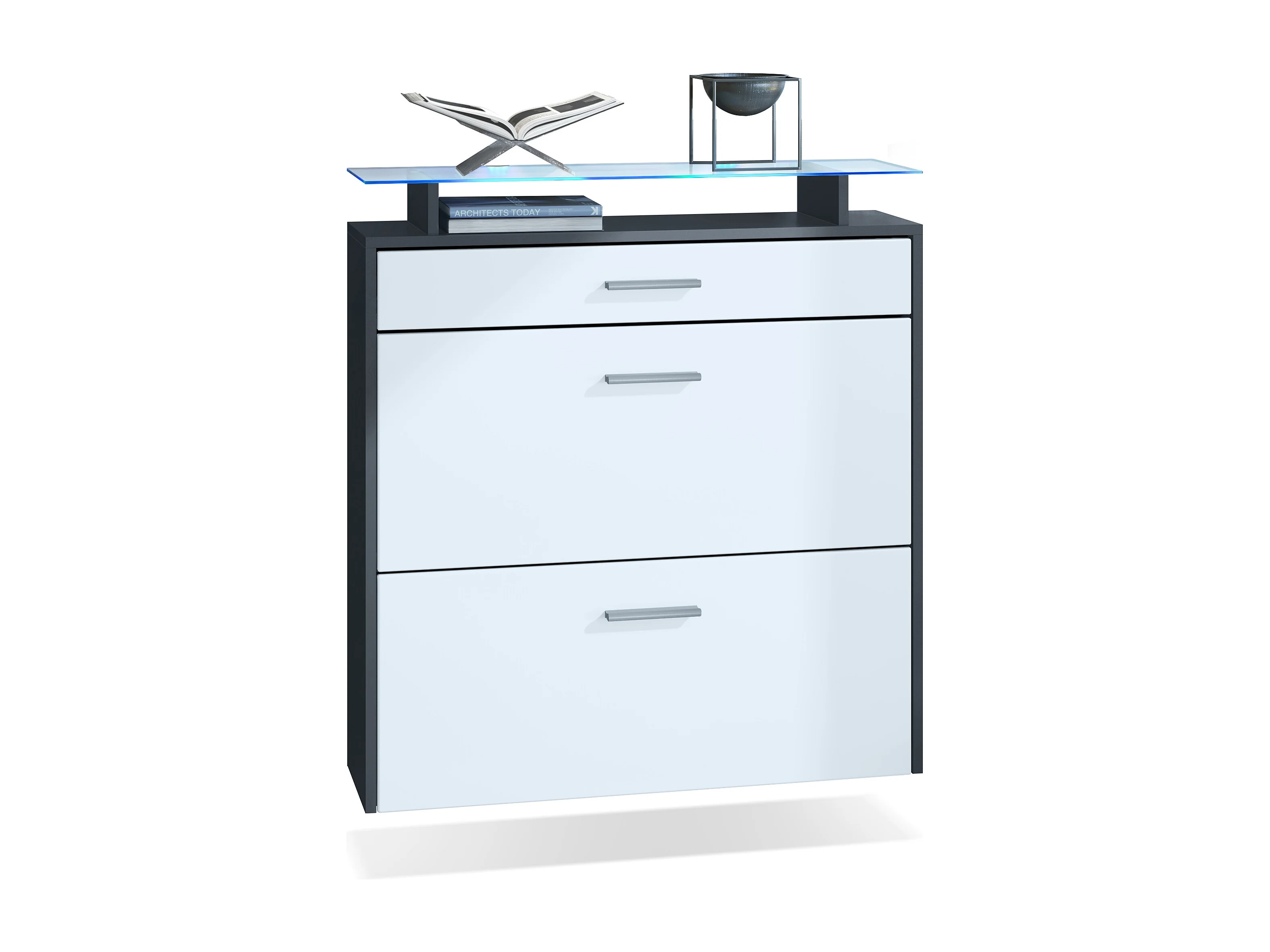 Armoire à chaussures Malea de , anthracite mat/blanc mat y compris LED - basculeur à chaussures suspendu pour 16 paires de chaussures (89 x 96 x 23 cm)