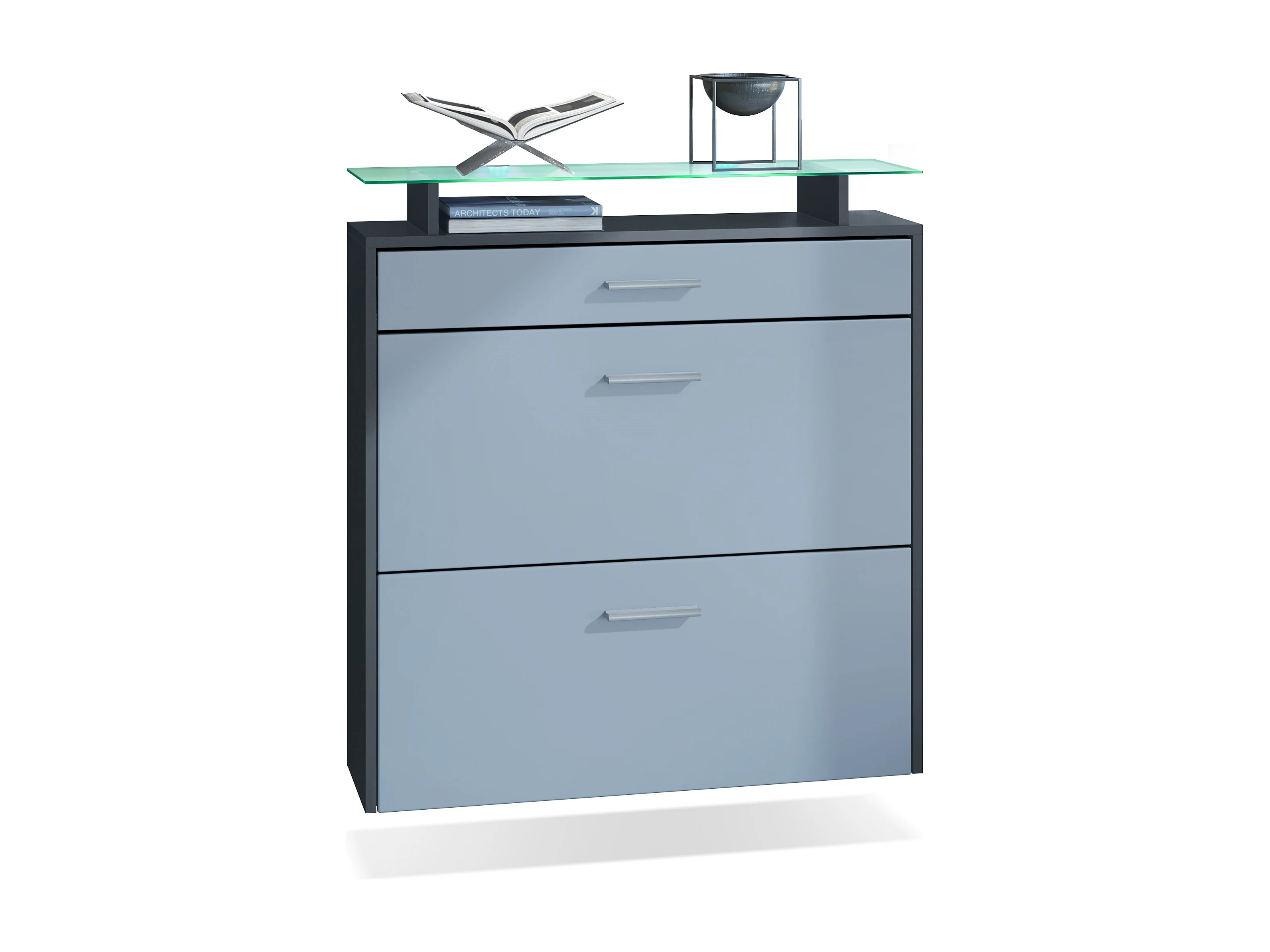 Armoire à chaussures Malea de , anthracite mat/denim mat y compris LED - basculeur à chaussures suspendu pour 16 paires de chaussures (89 x 96 x 23 cm)