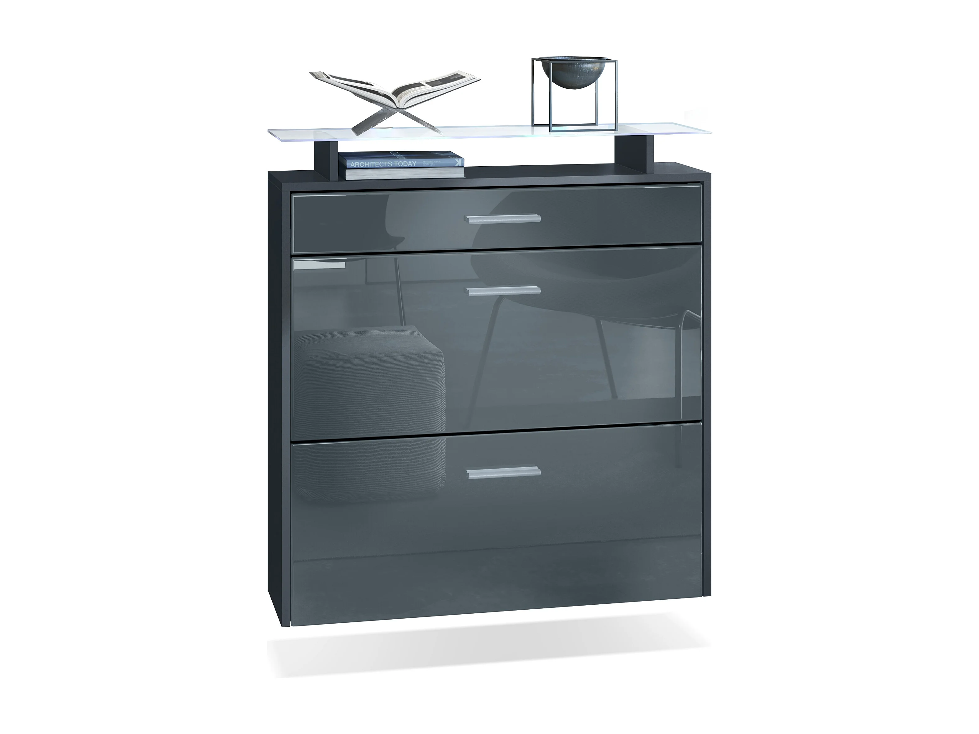 Armoire à chaussures Malea de , anthracite mat/gris brillant y compris LED - basculeur à chaussures suspendu pour 16 paires de chaussures (89 x 96 x 23 cm)