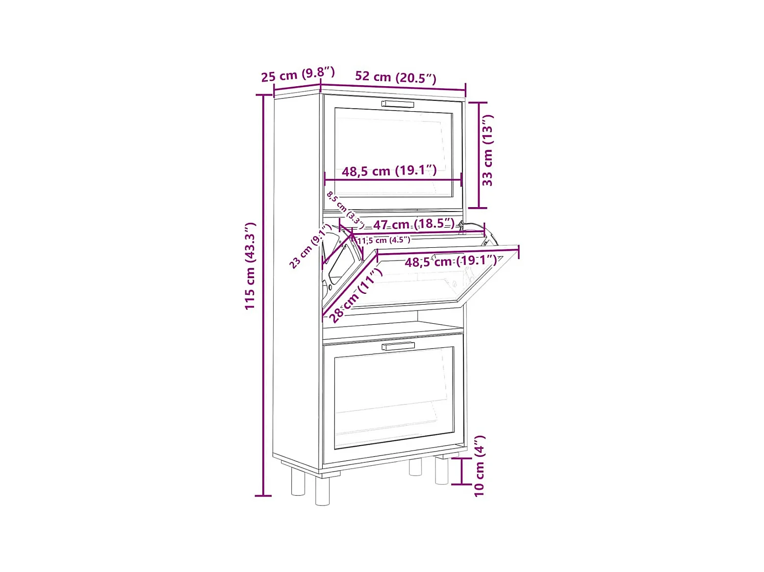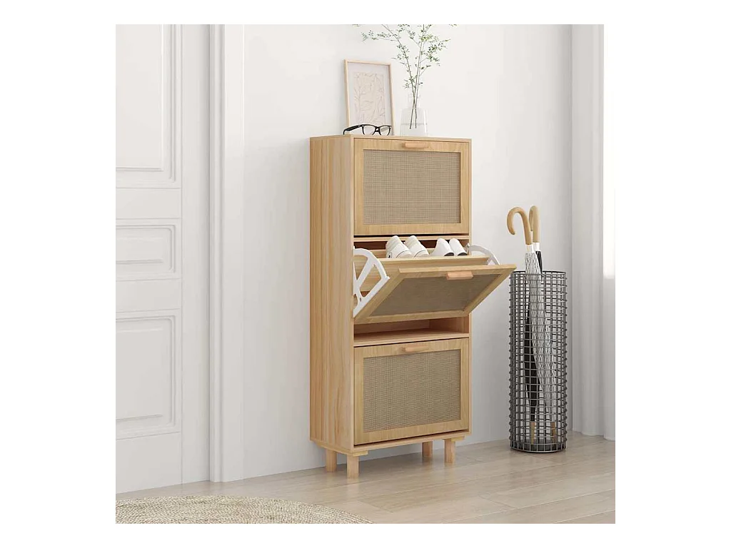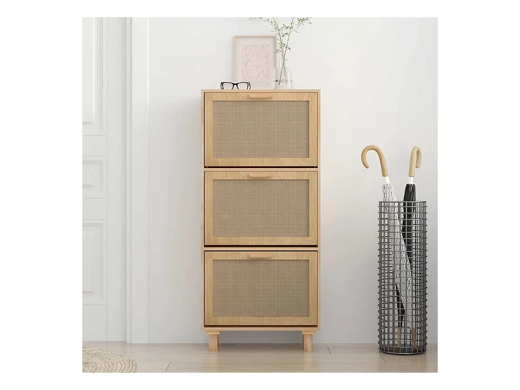 Armoire à chaussures Marron 52x25x115cm Bois d'ingénierie/rotin