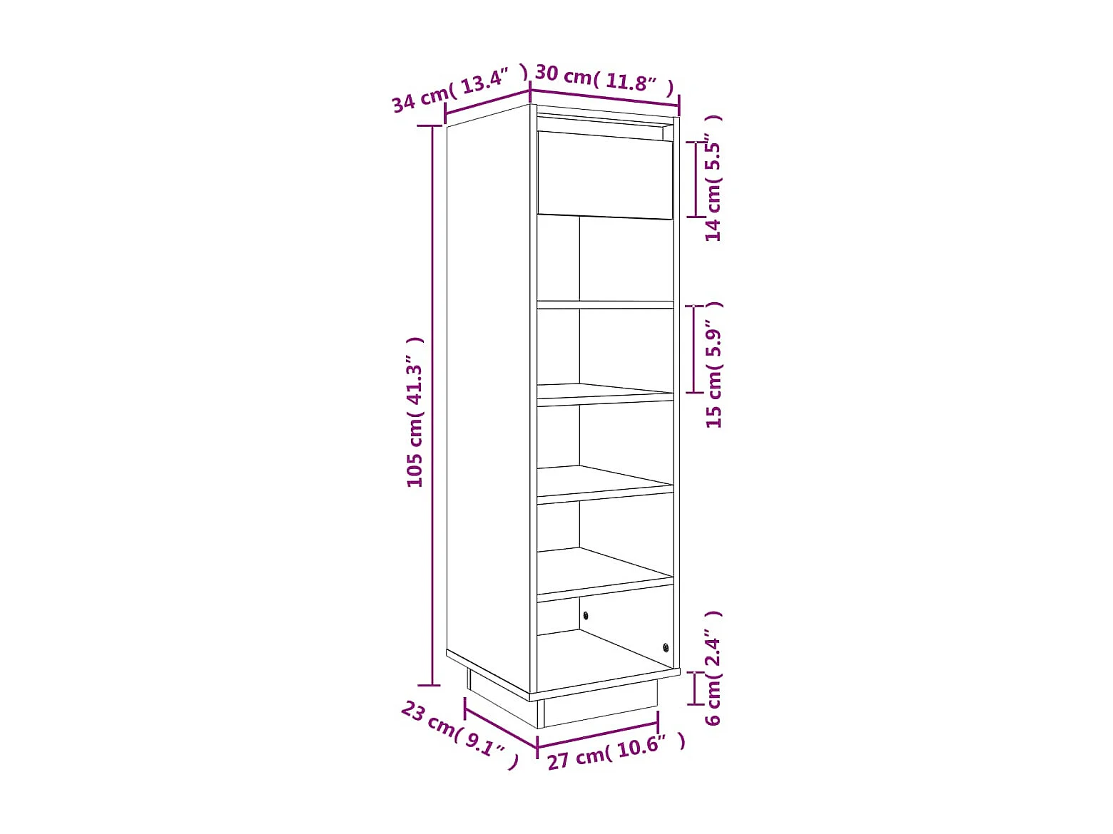 Armoire à chaussures marron miel 30x34x105cm bois de pin massif