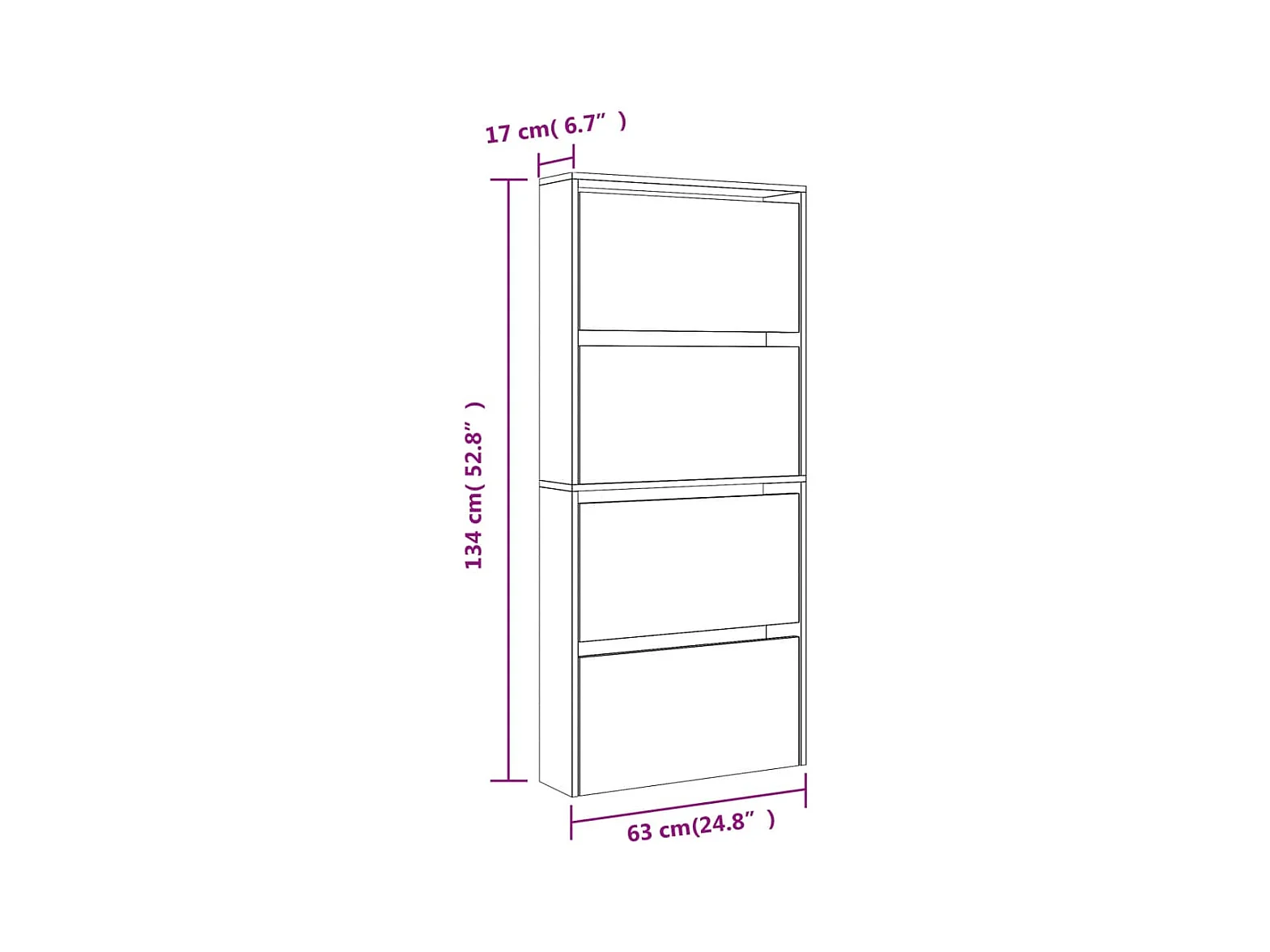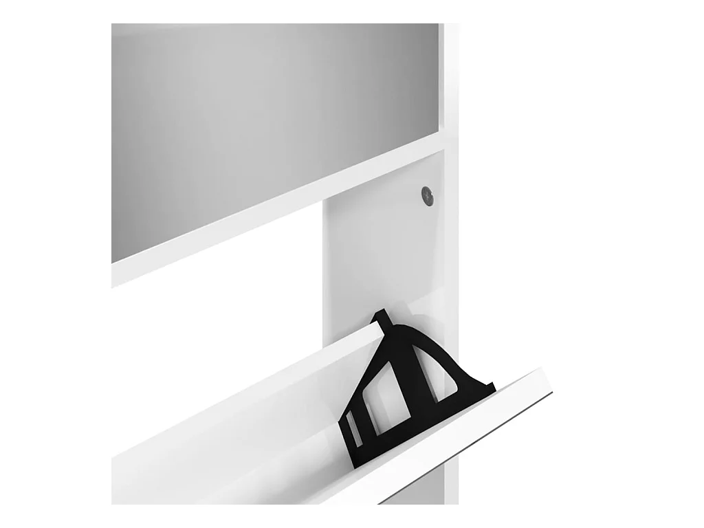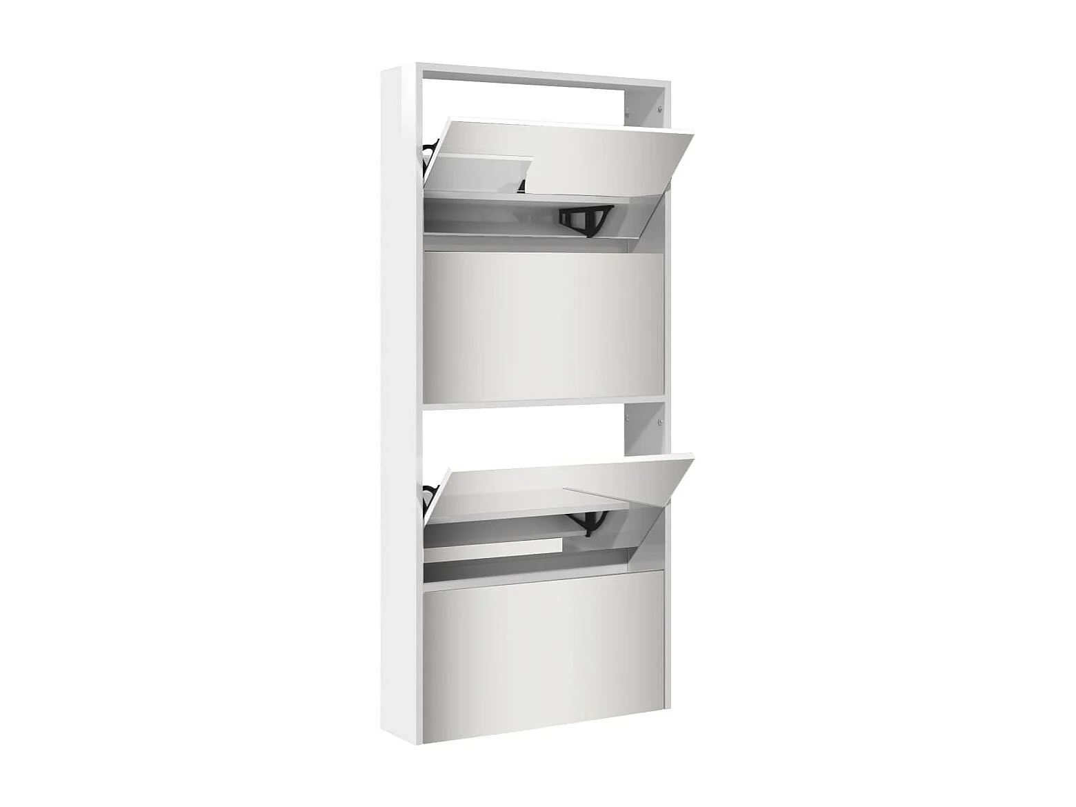 Armoire à chaussures miroir 4 niveaux blanc brillant