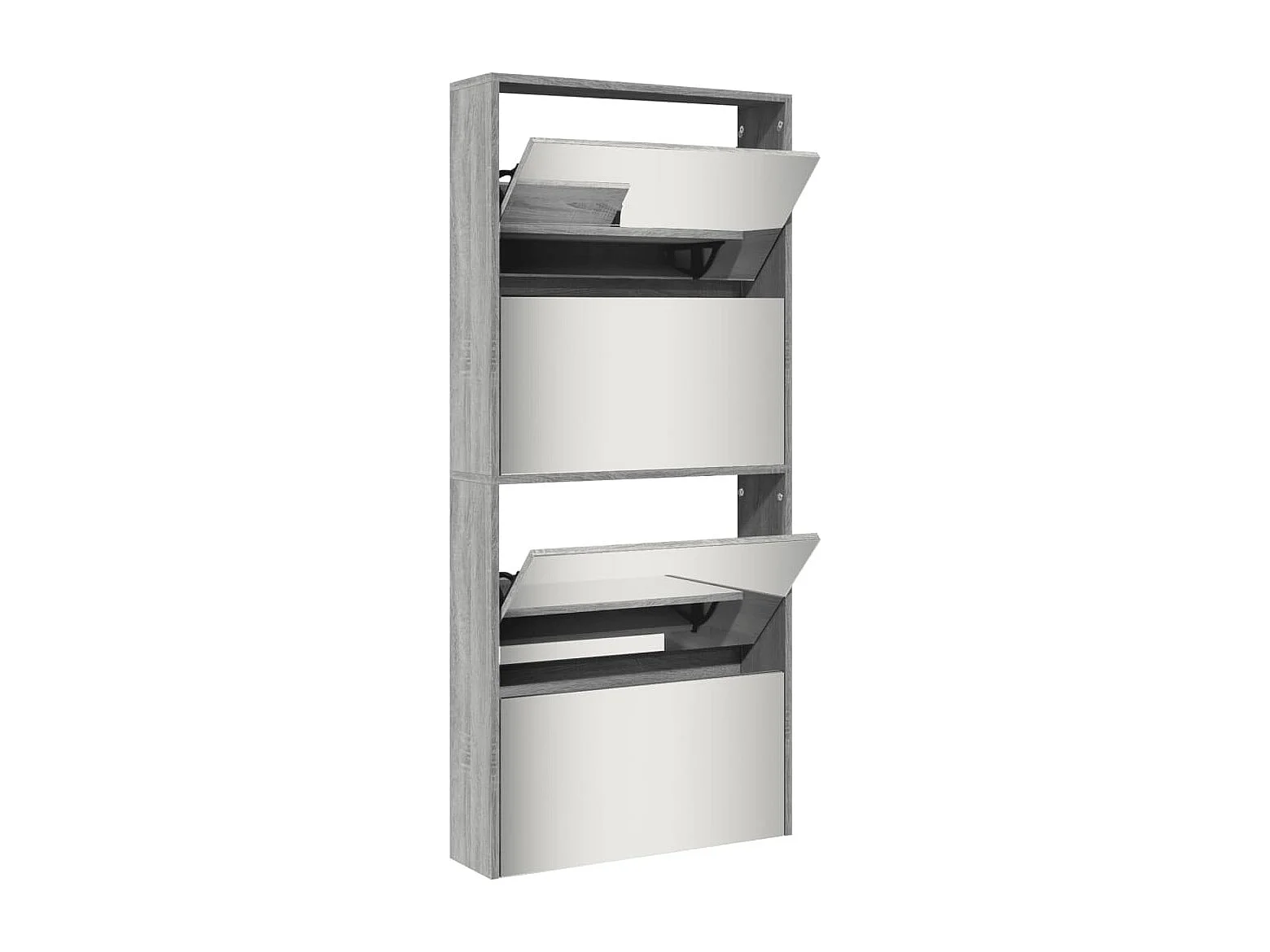 Armoire à chaussures miroir 4 niveaux sonoma gris 63x17x134