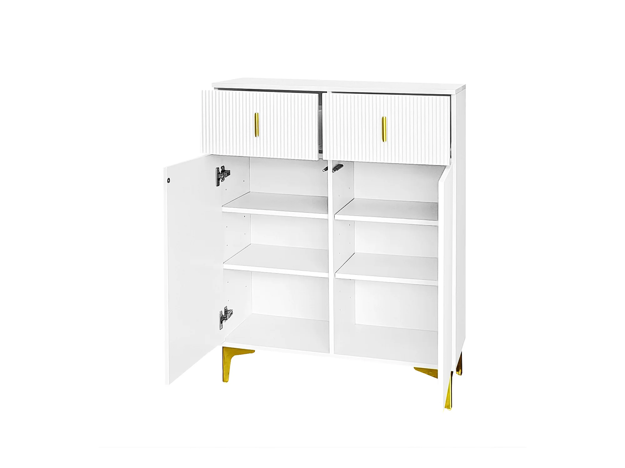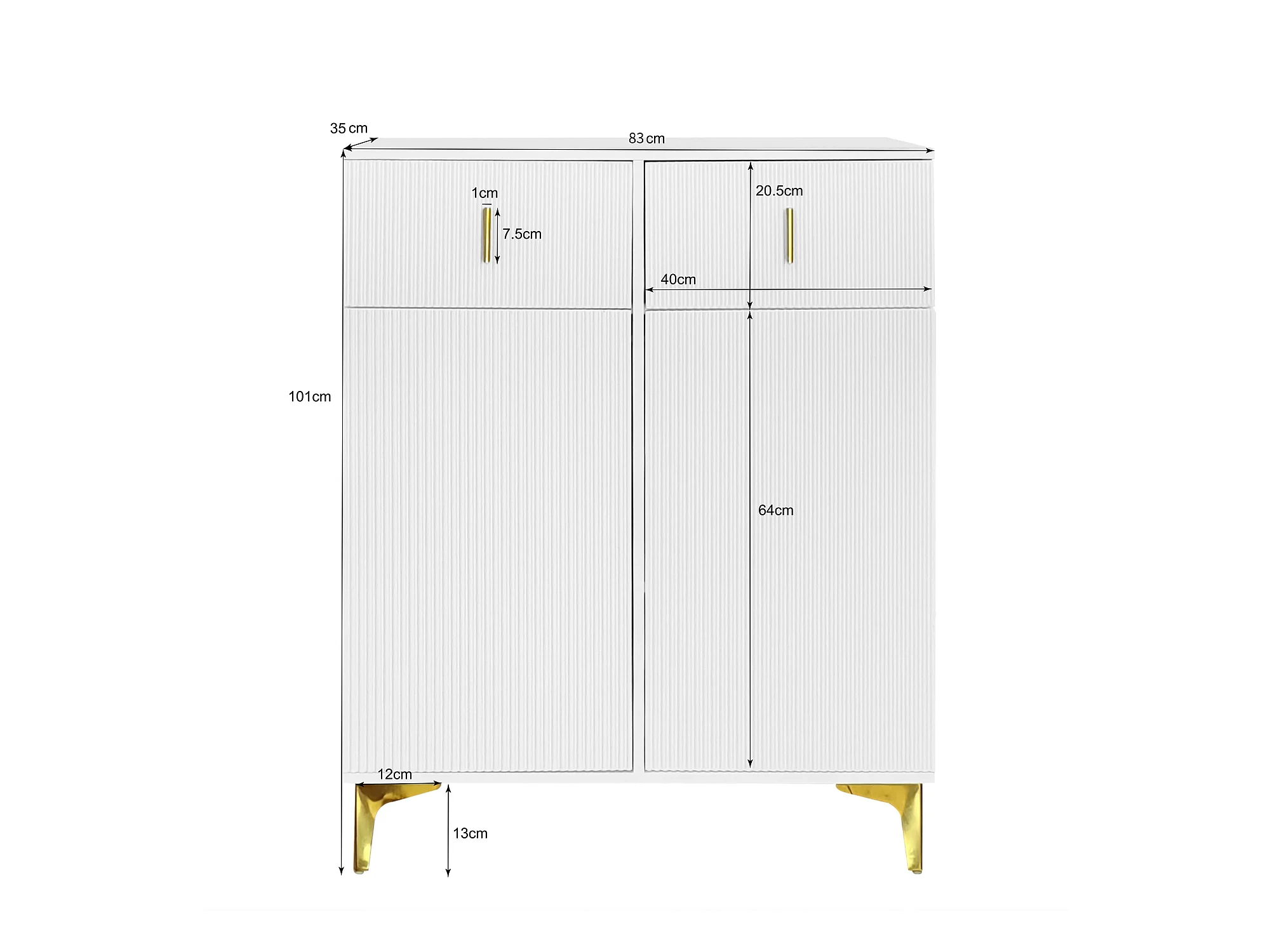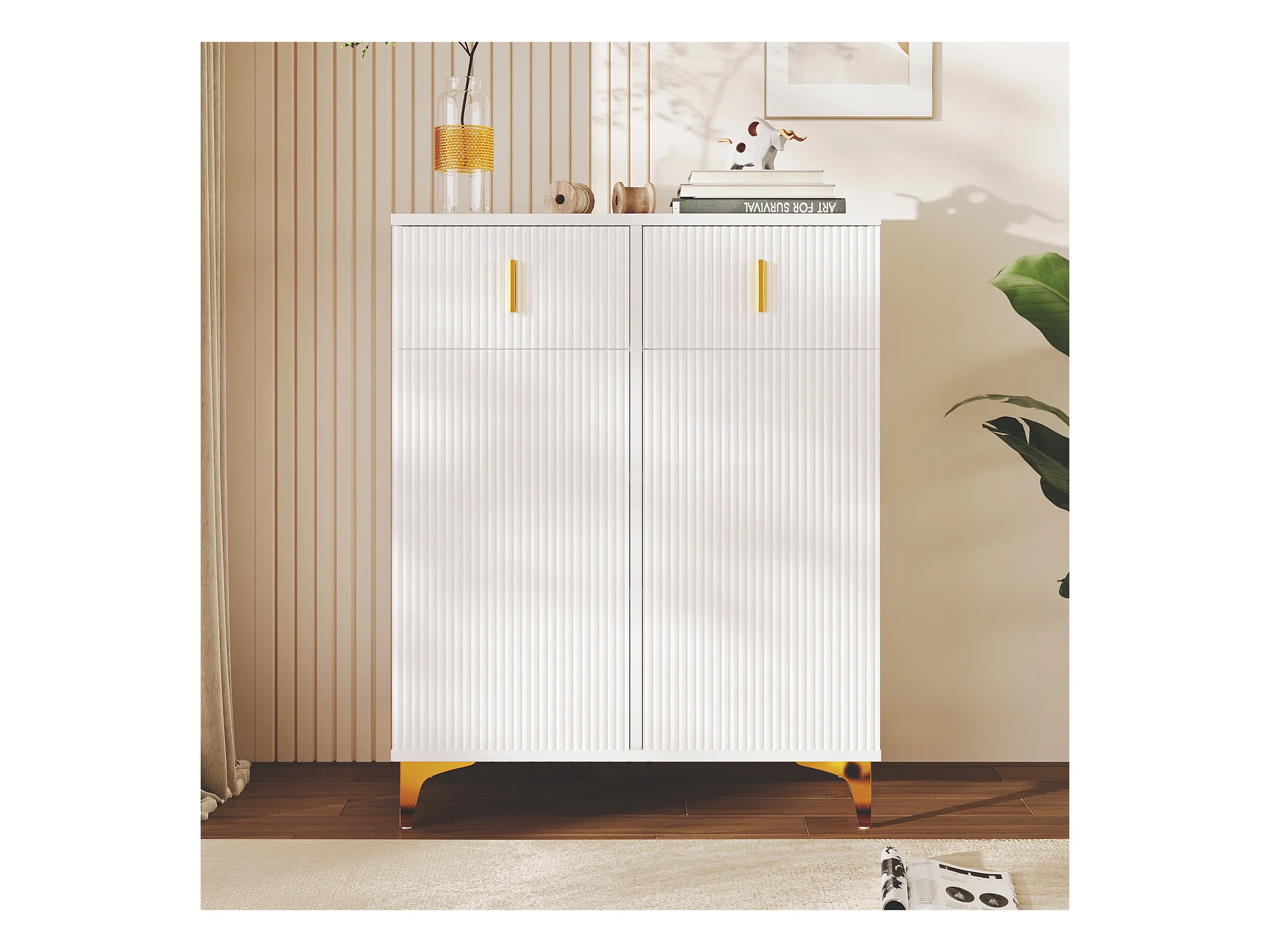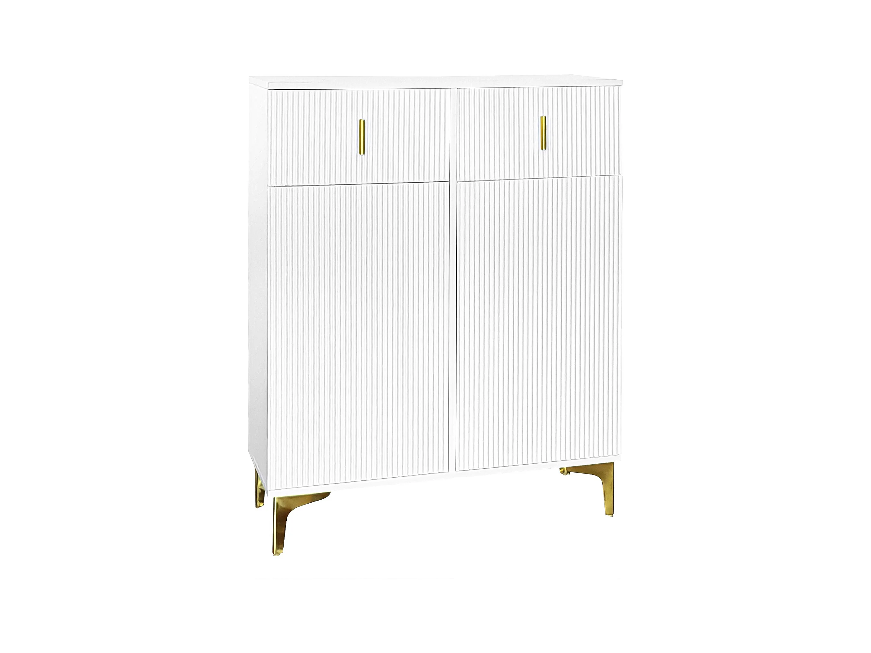 Armoire à chaussures multifonction avec poignée, Buffet avec 2 tiroirs et 2 portes, Blanc