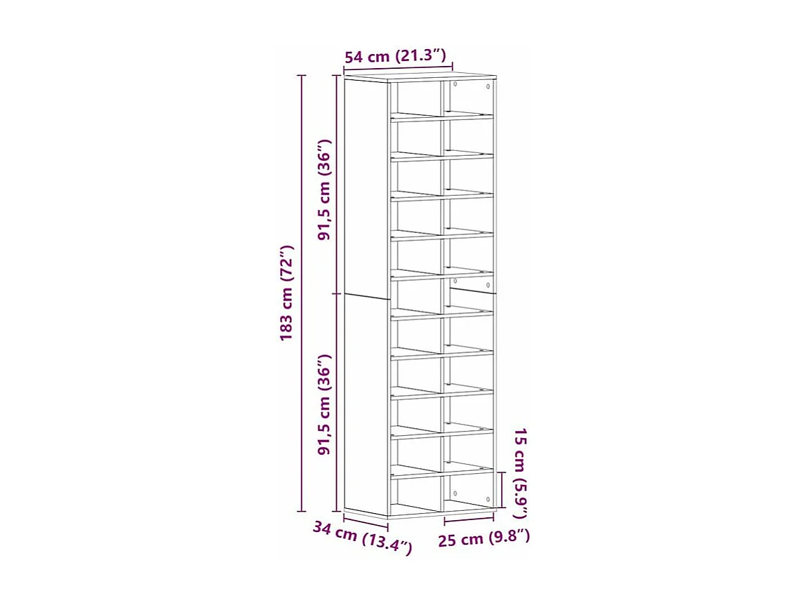 Armoire à chaussures vieux bois 54x34x183 bois ingénierie