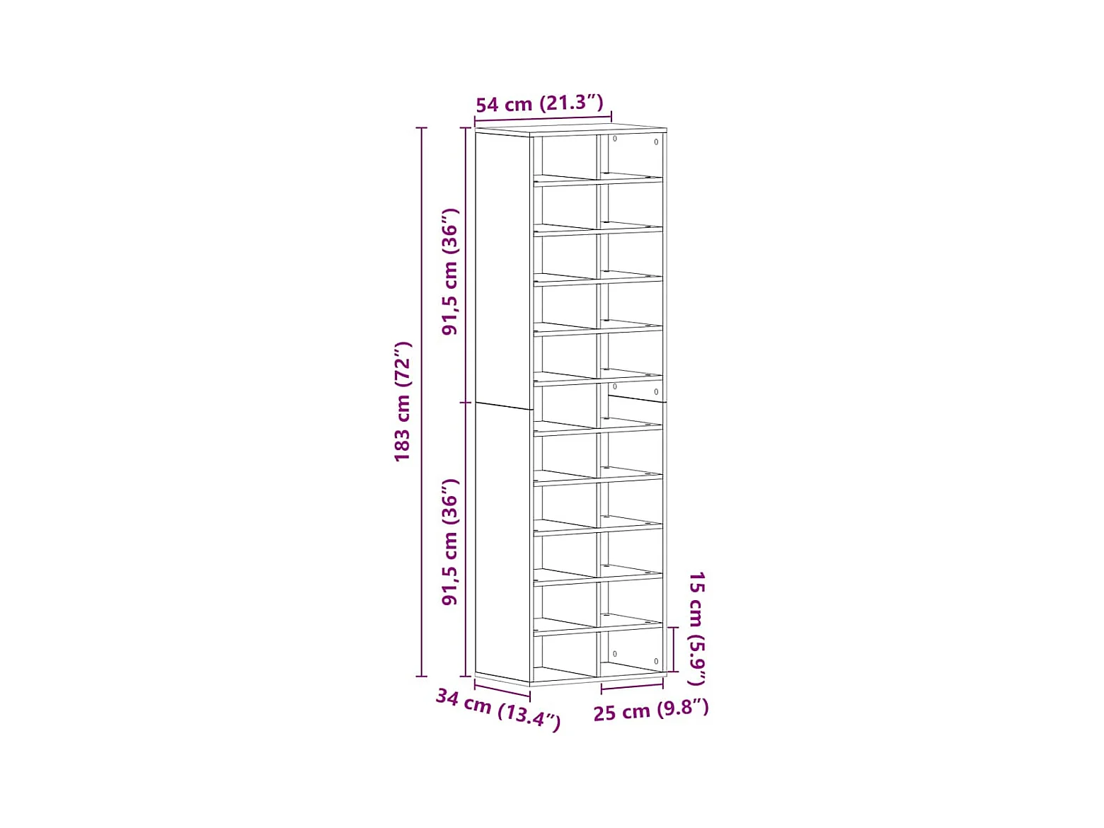 Armoire à chaussures vieux bois 54x34x183 cm bois ingénierie