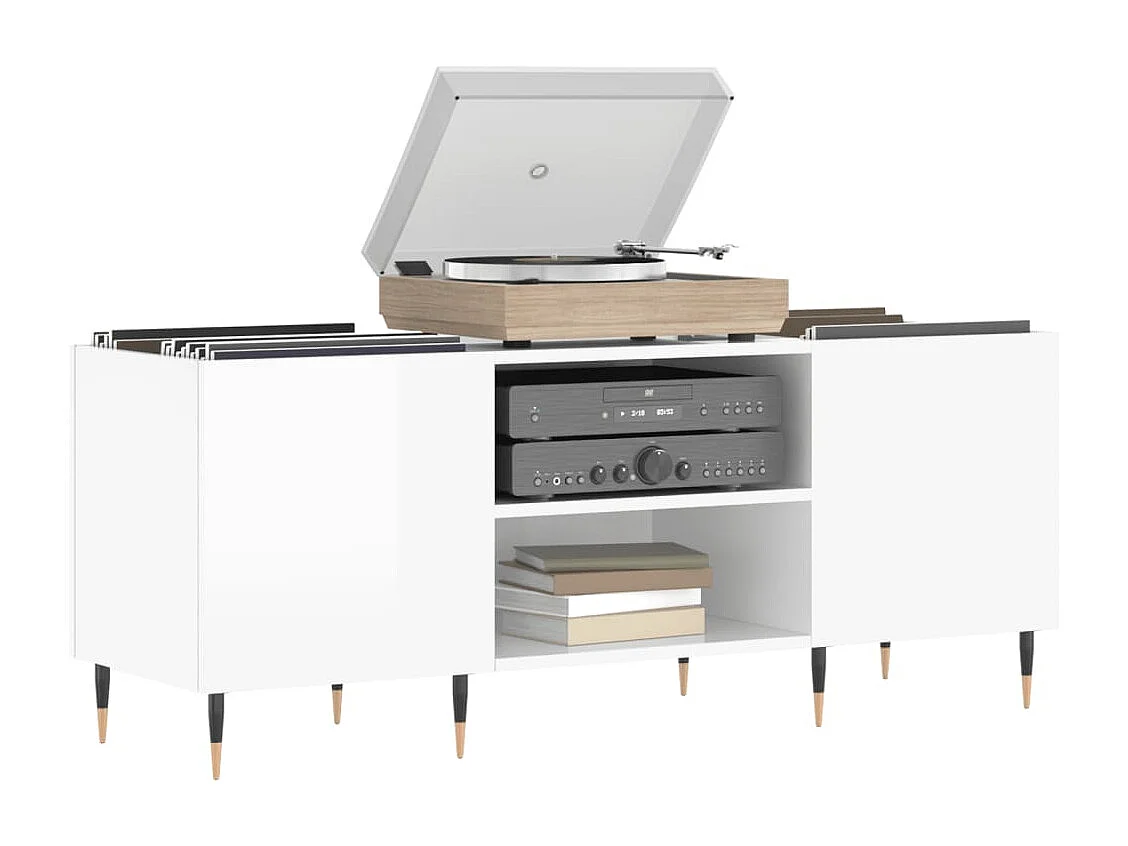 Armoire à disques blanc brillant 121x38x48 cm bois d'ingénierie FR57963