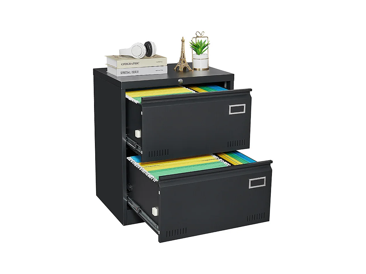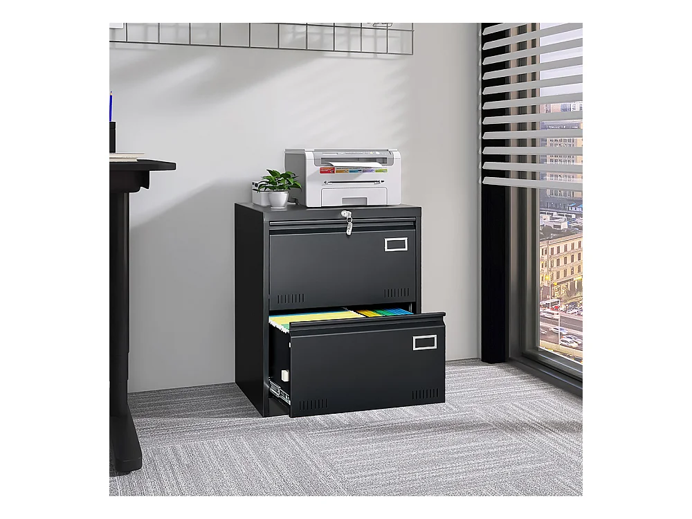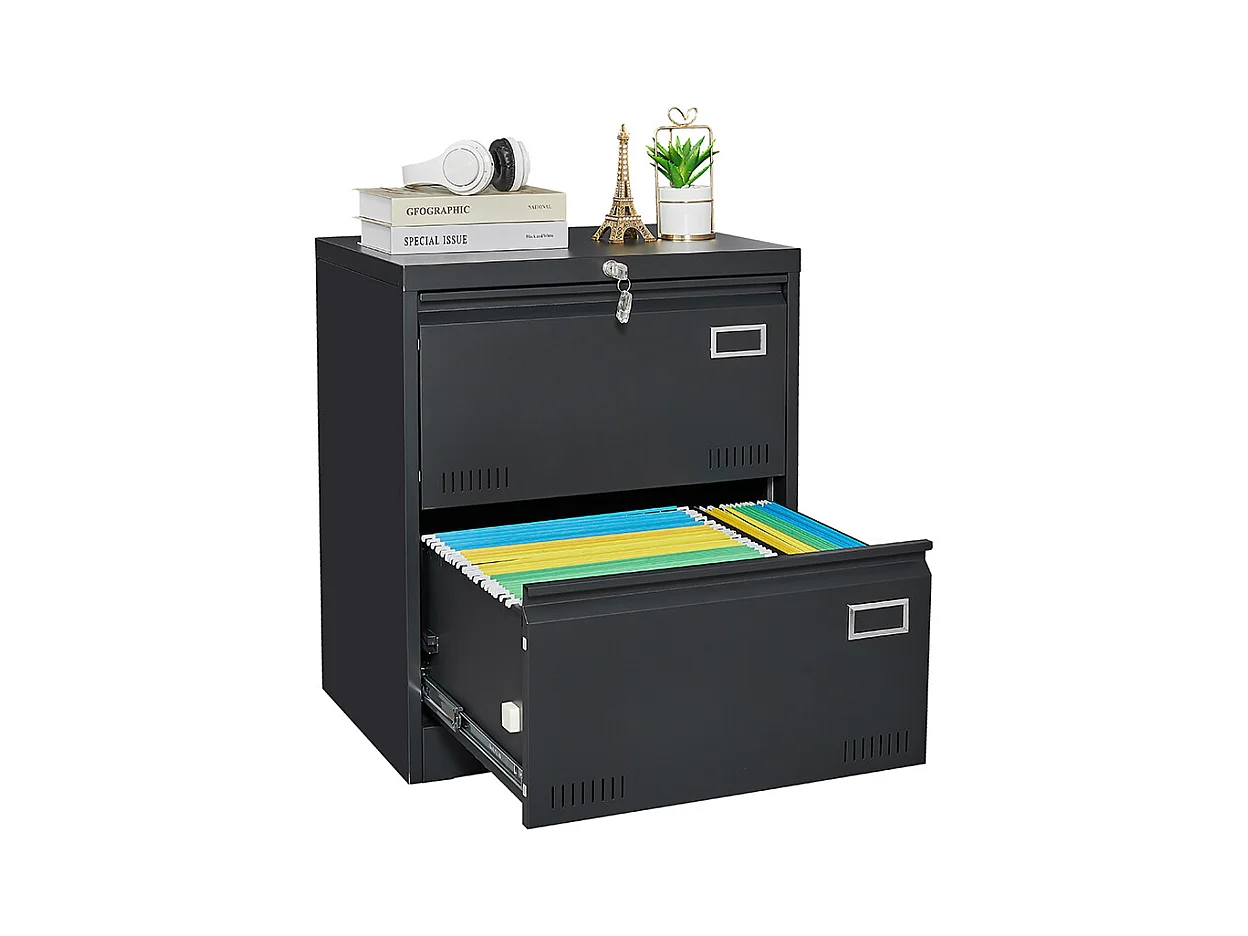 Armoire à dossiers latérale à 2 tiroirs avec serrure armoire à dossiers verticale armoire à dossiers métallique verrouillable assemblage requis noir