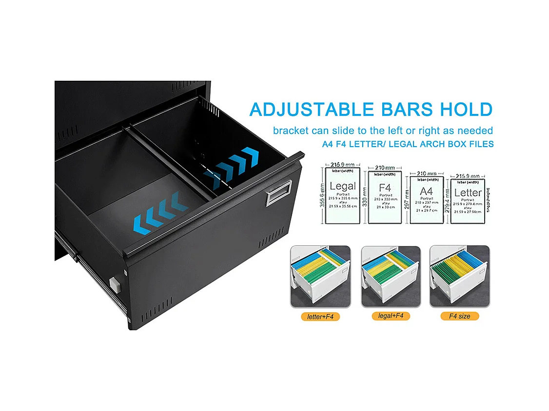 Classeur à 2 tiroirs avec serrure classeur métallique à roulettes sous le bureau convient aux formats lettre/légal/A4 noir
