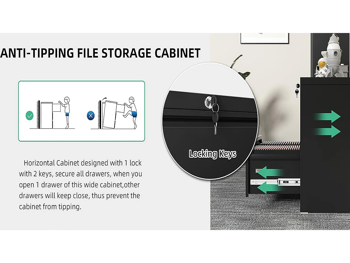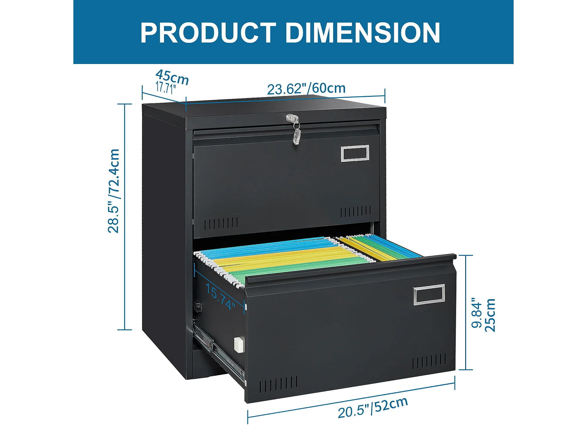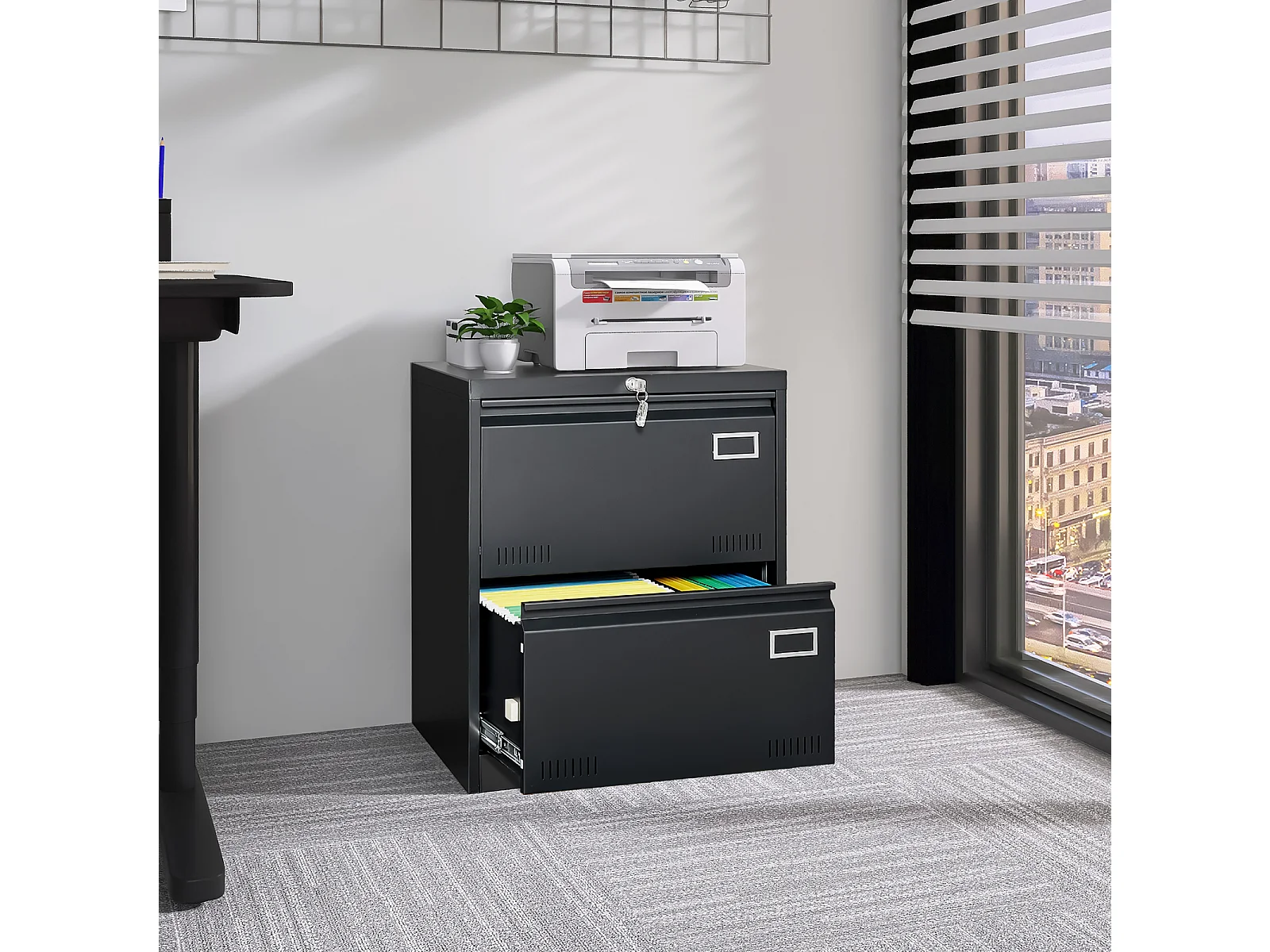 Armoire à fichiers métal 2 tiroirs, verrouillable, rangement vertical, acier, noir (60x45x72.4 cm)
