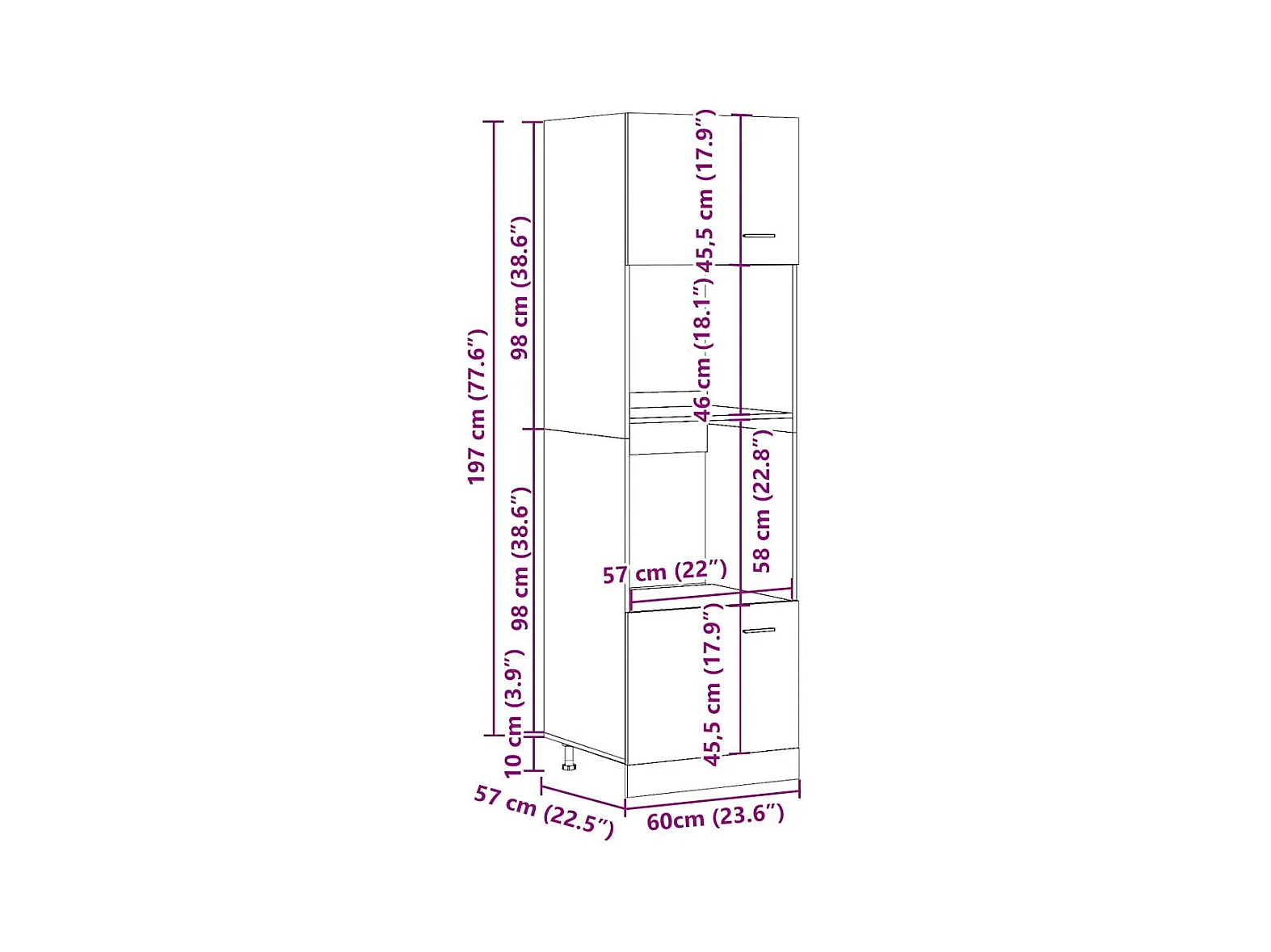 Meuble à micro-ondes "Lyon" Chêne artisanal 60 x 57 x 207 cm Bois d'ingénierie