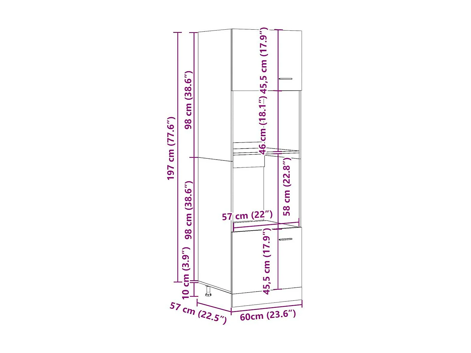 Meuble à micro-ondes "Lyon" Bois ancien 60 x 57 x 207 cm Bois d'ingénierie
