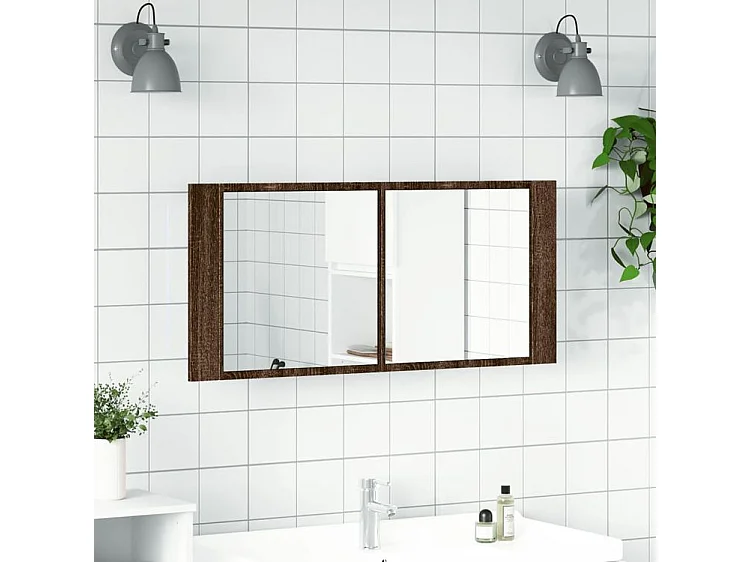 Armoire à miroir à LED de bain chêne marron 100x12x45