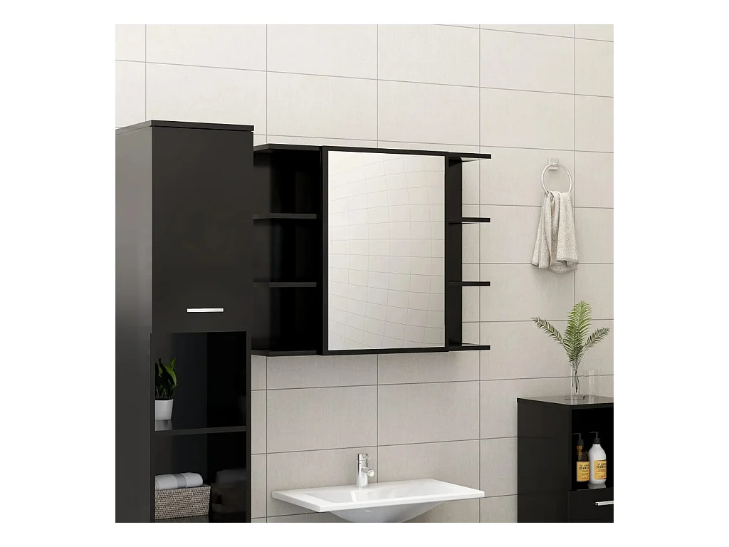 Armoire de salle de bain à miroir noir bois d'ingénierie