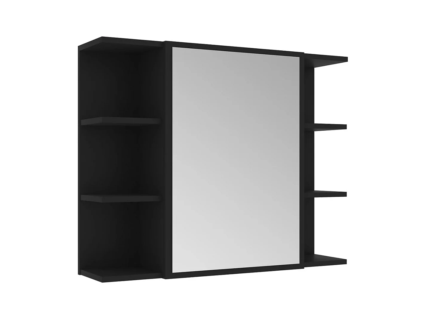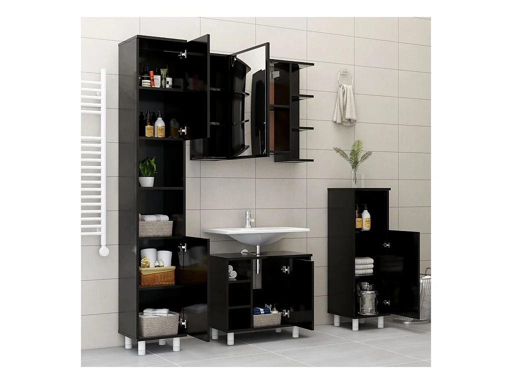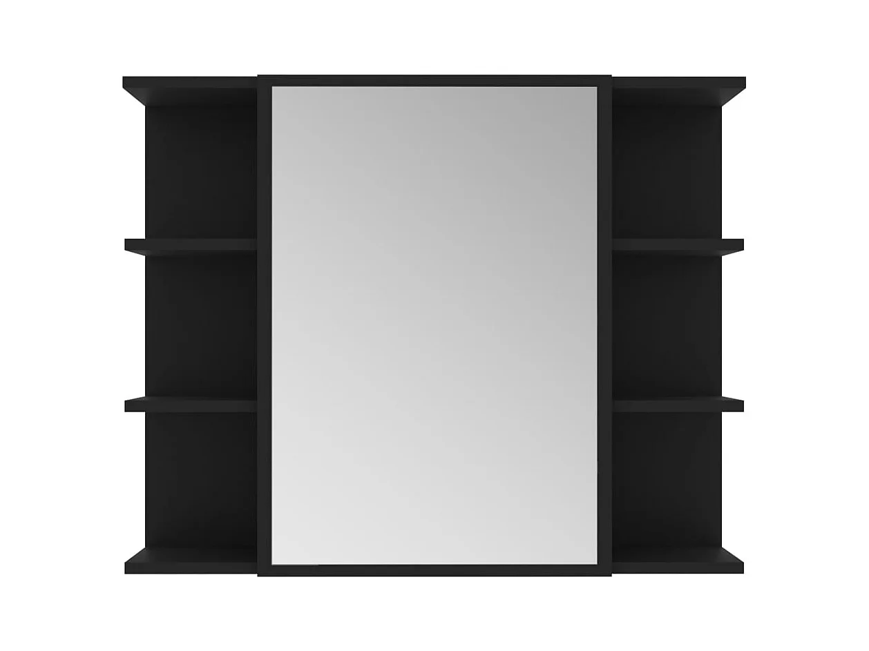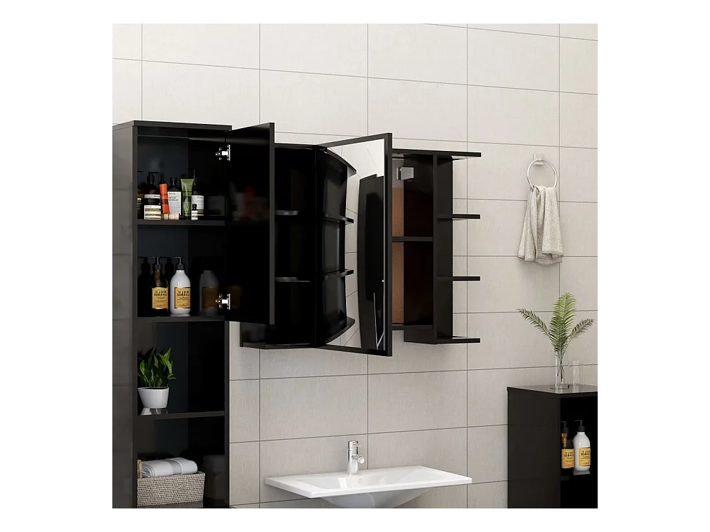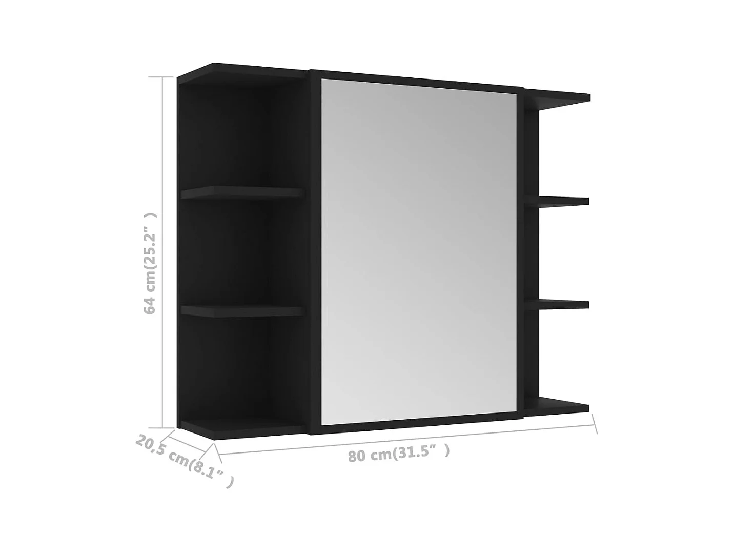 Armoire à miroir de salle de bain Noir Bois d’ingénierie