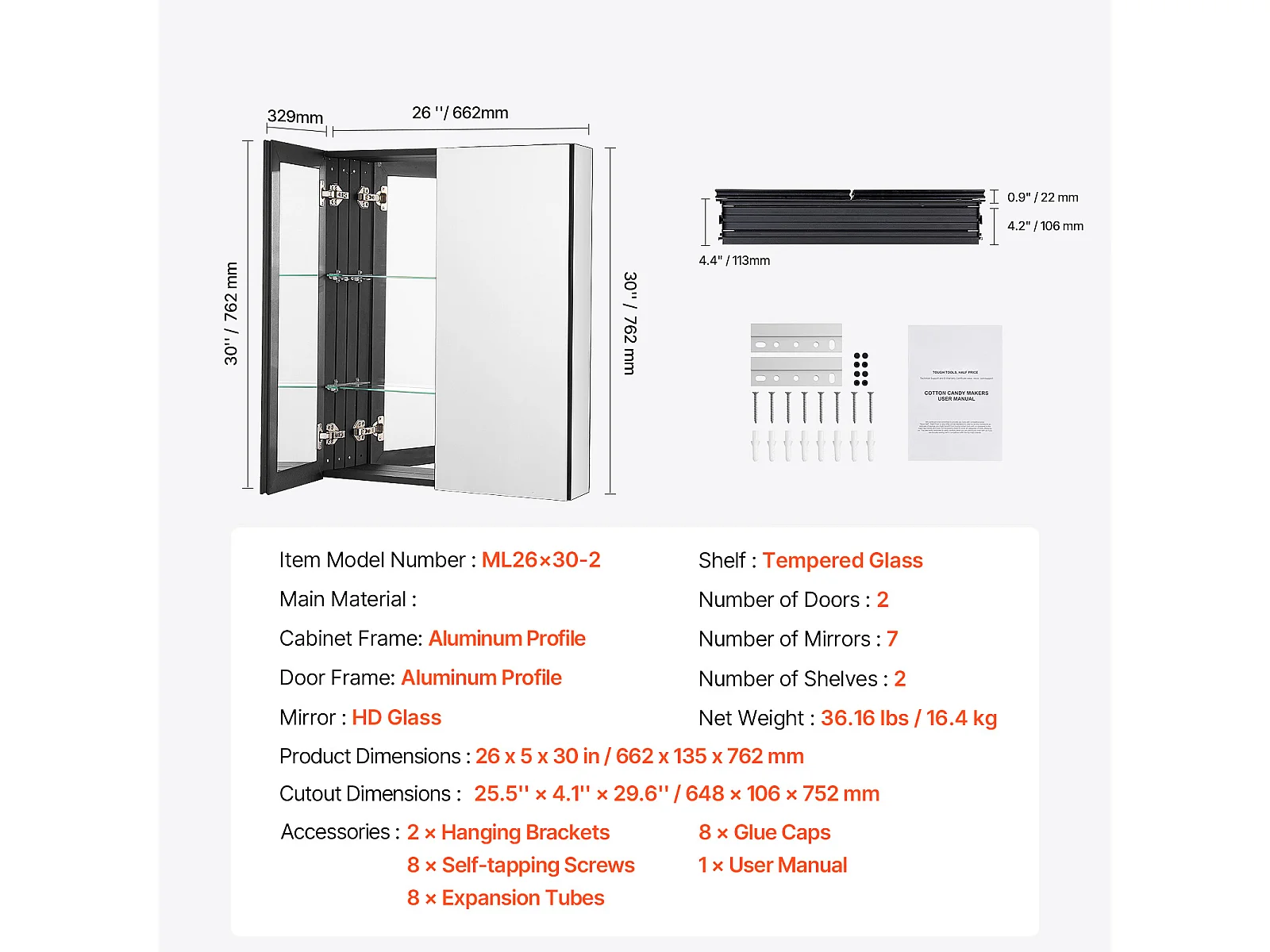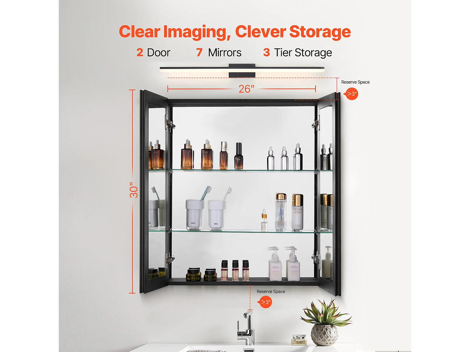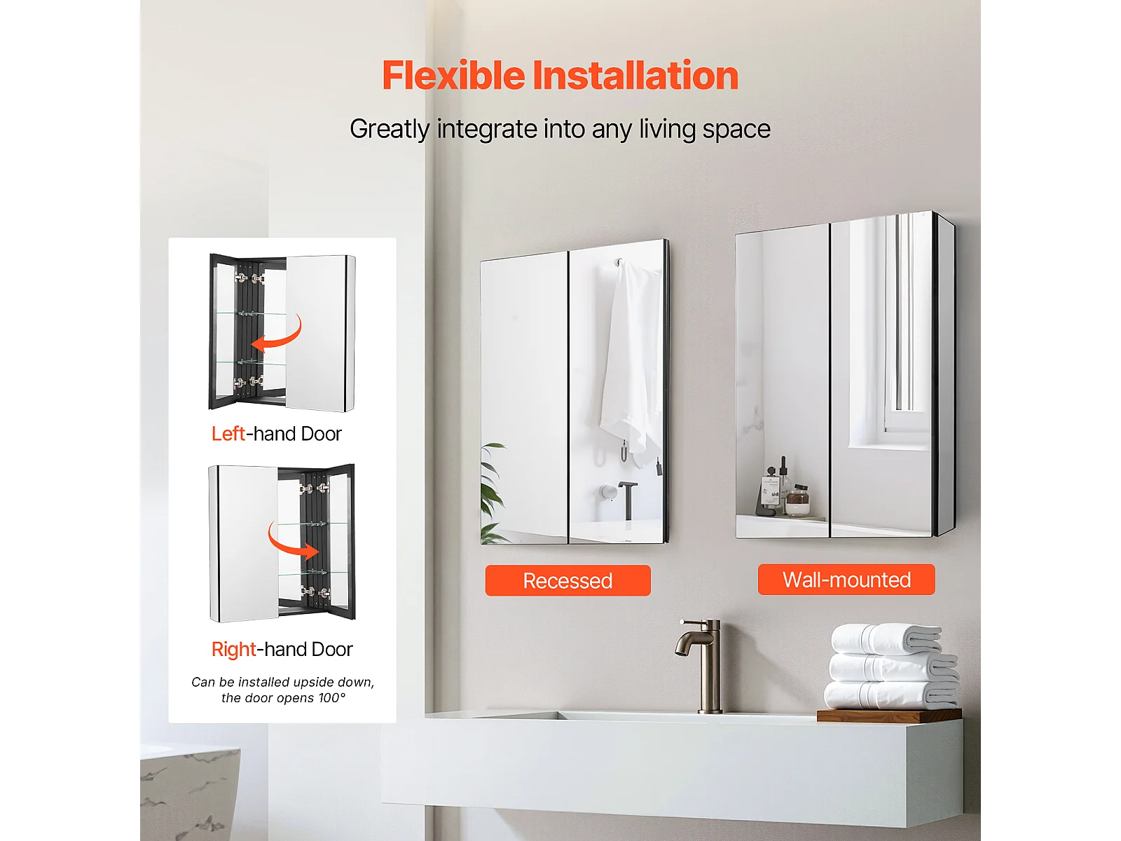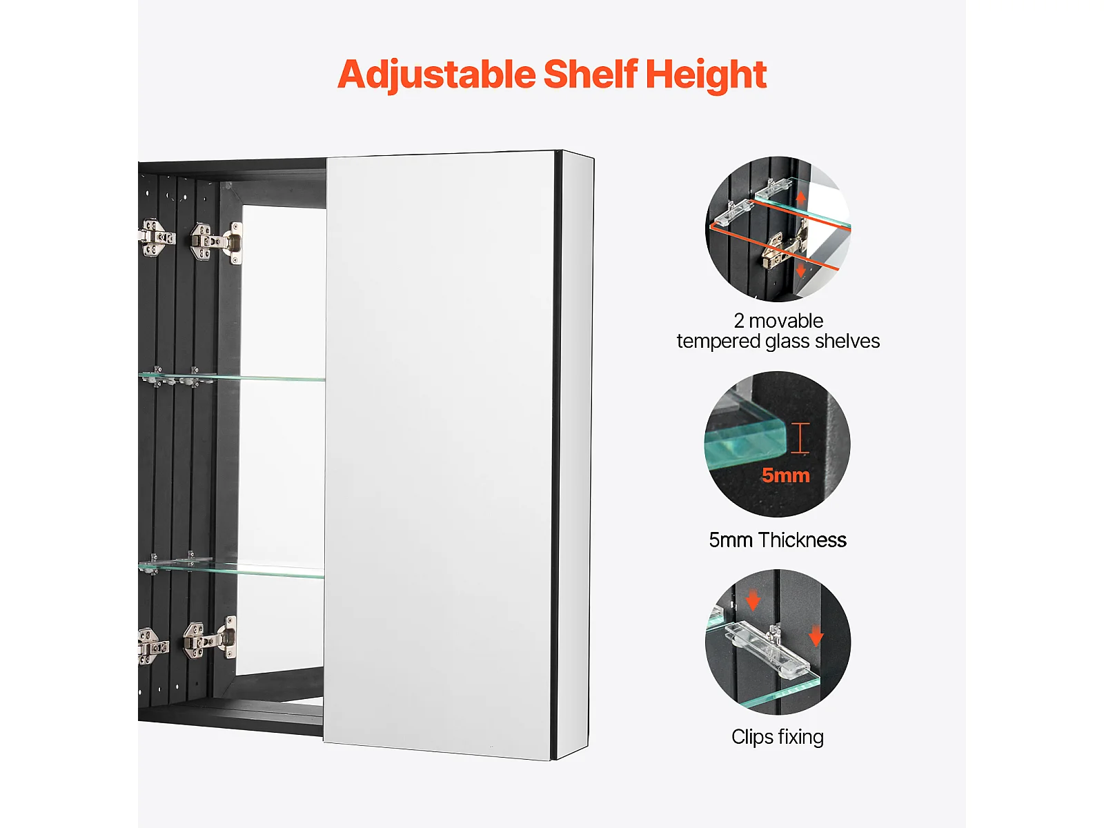 Armoire à Pharmacie, buffet médicaments à deux portes, SucceBuy Armoire à Pharmacie 66.2 × 76,2 cm - Armoire à Miroir avec Étagères Réglables