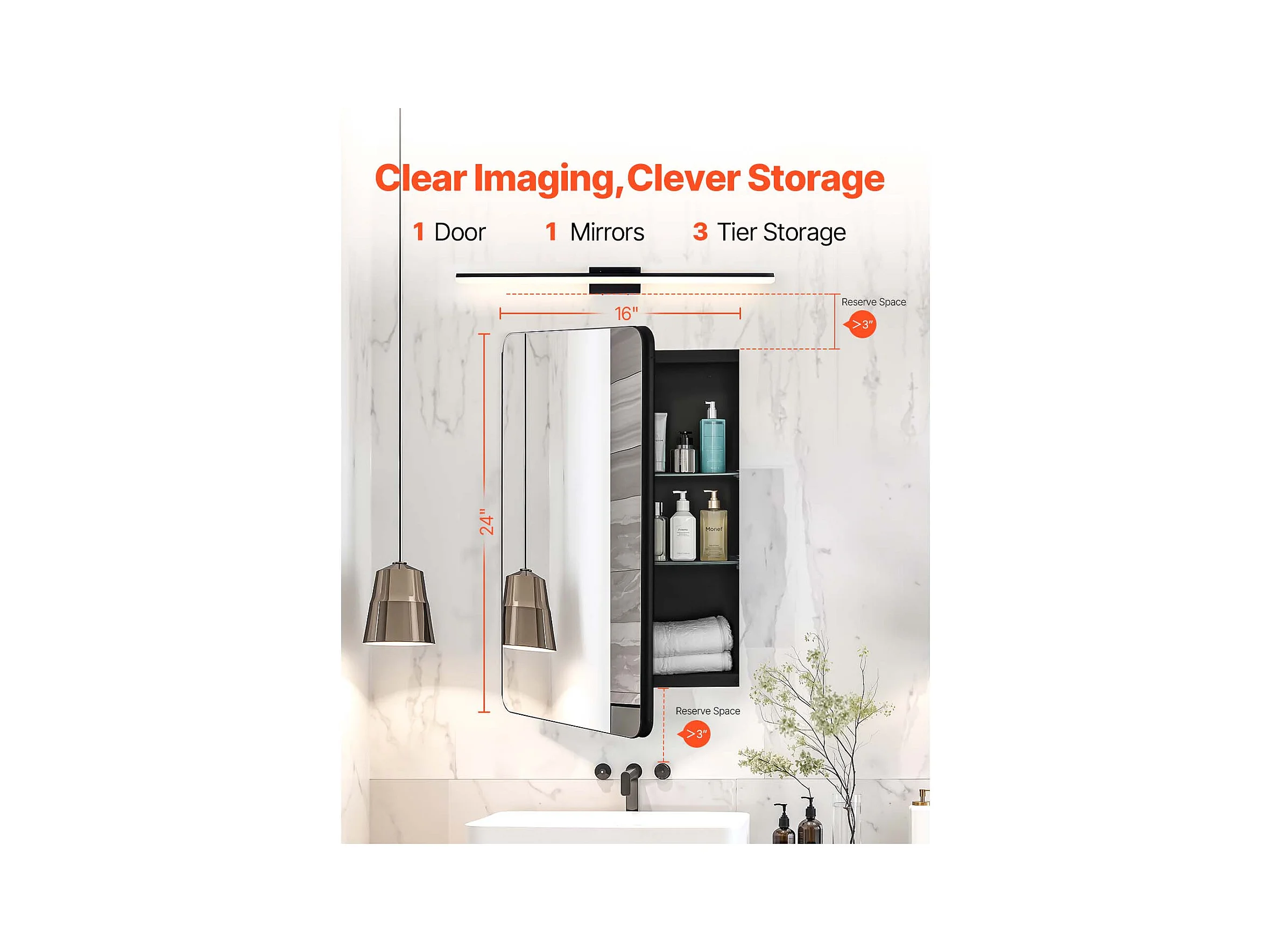 Armoire à Pharmacie, SucceBuy Armoire à Pharmacie - 36 x 61 cm, Armoire à Miroir de Salle de Bain pour Montage Mural ou Installation Encastrée