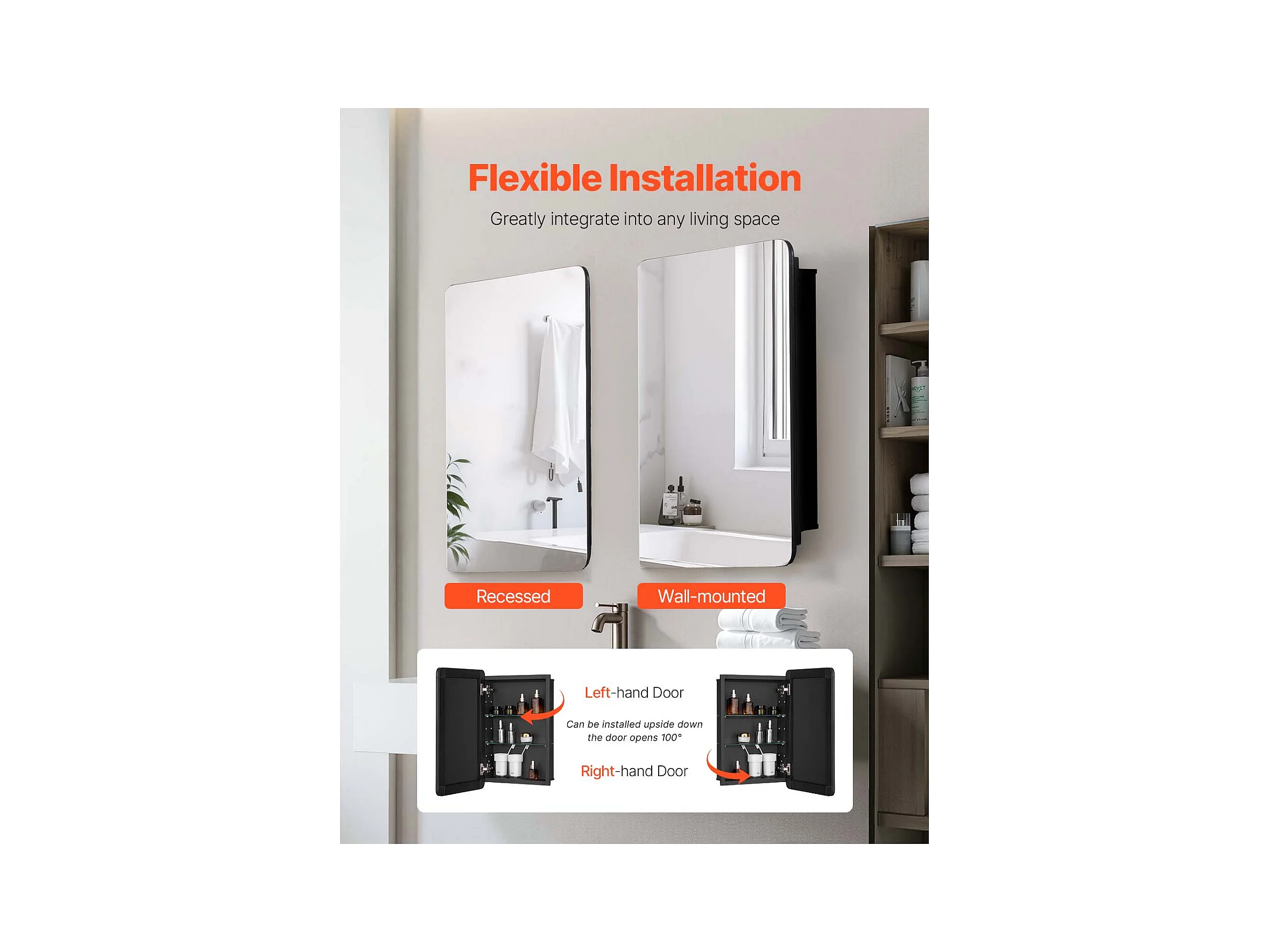 Armoire à Pharmacie, SucceBuy Armoire à Pharmacie - 41 x 61 cm, Armoire à Miroir de Salle de Bain pour Montage Mural ou Installation Encastrée