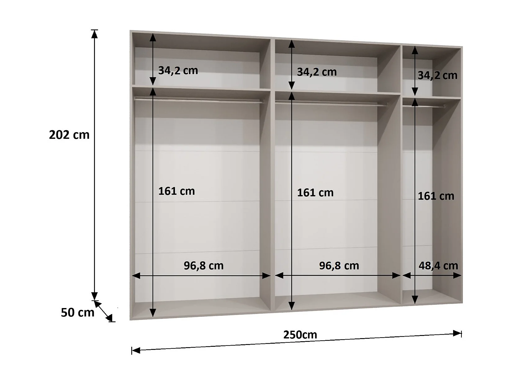 Armoire à portes battantes Bari 1 202/250/52 5 portes (cachemire)