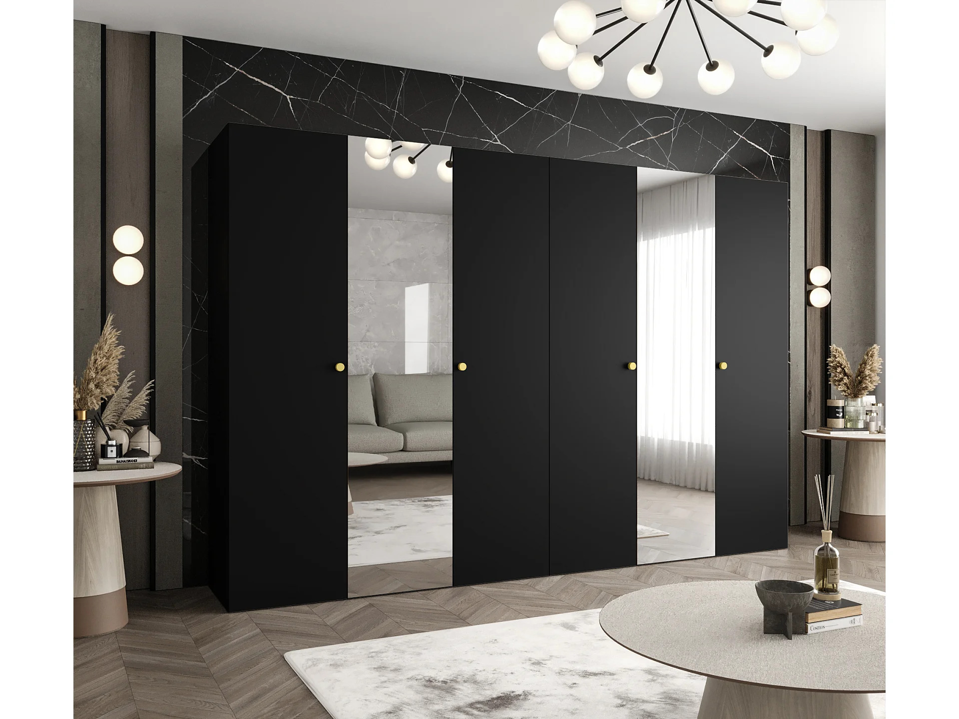 Armoire à portes battantes Parma 2 202/300/52 6 portes (Noir)