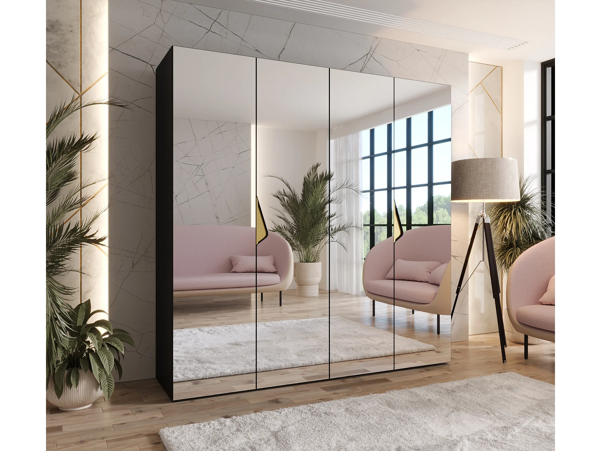 Armoire à portes battantes Sandi 3 200 / 202 / 52 (Noir + poignées: Gold)